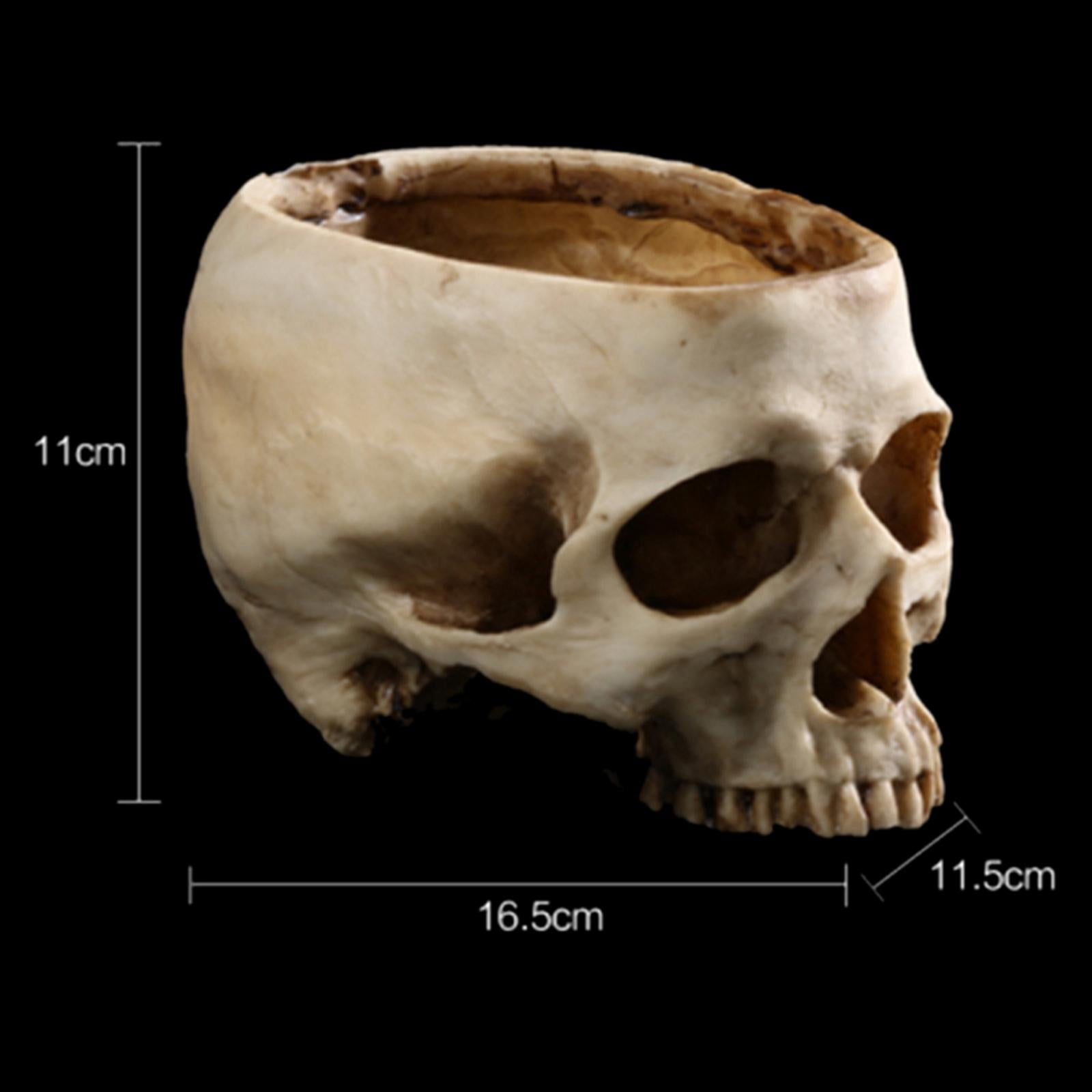 Human Skull Head Design Flower Pot Planter Container Replica Home Bar Decor