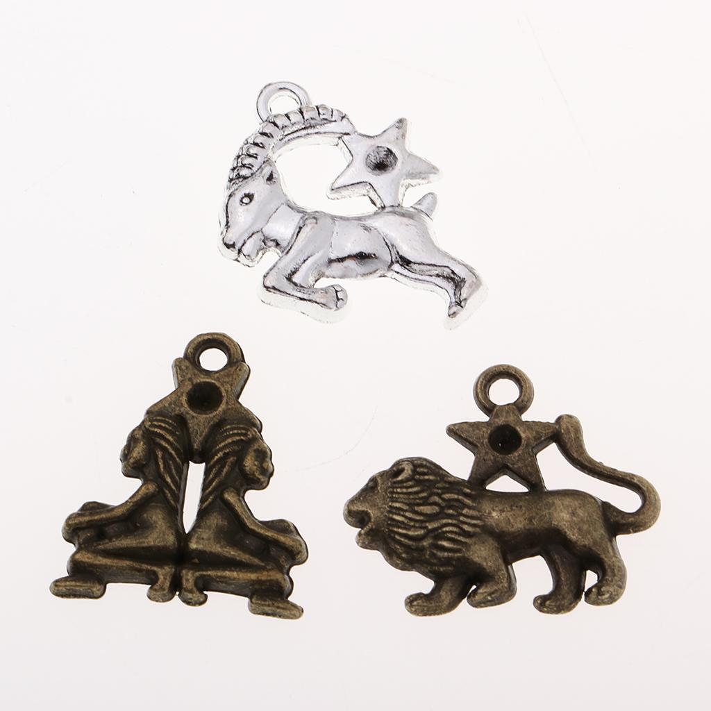 Antique Brozne and Tibetan Silver The Signs of the Zodiac Horoscope Charm Jewelry Making Pendants