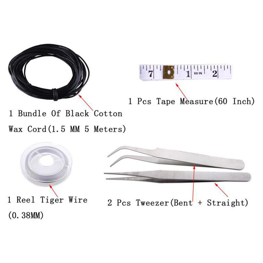 1x bundle of black cotto cord, 1xTape measure(60 inch), 1x Reel Clear Beading,2 x Bent(Straight)tweezer