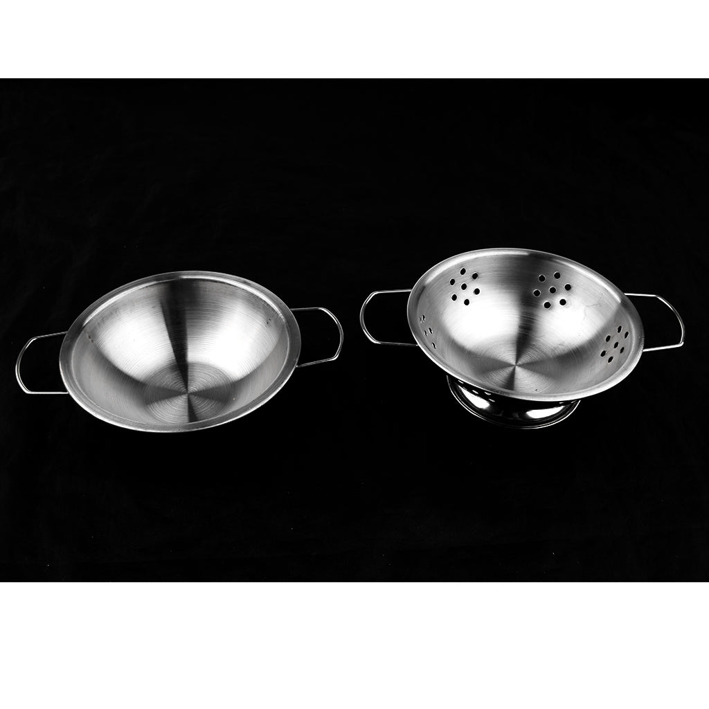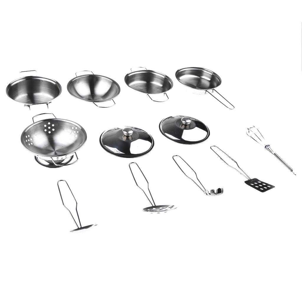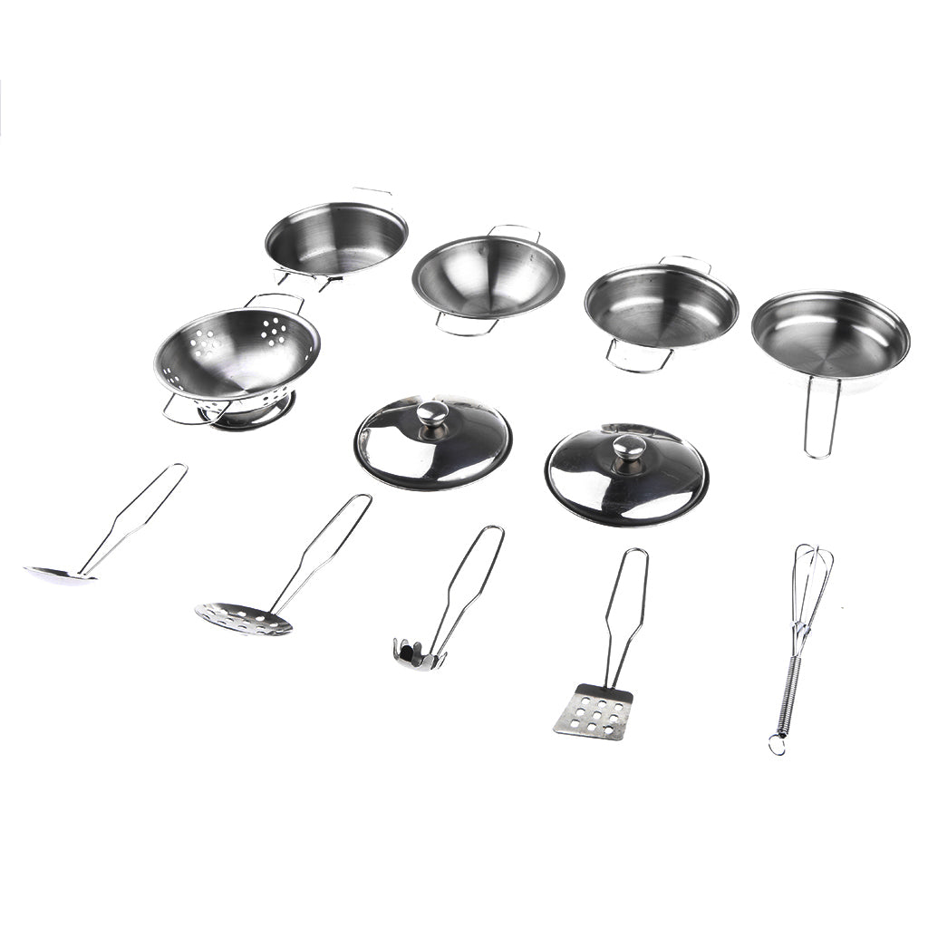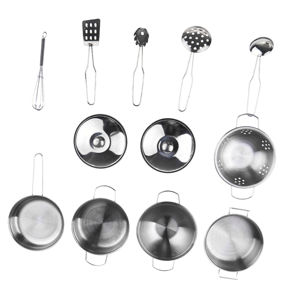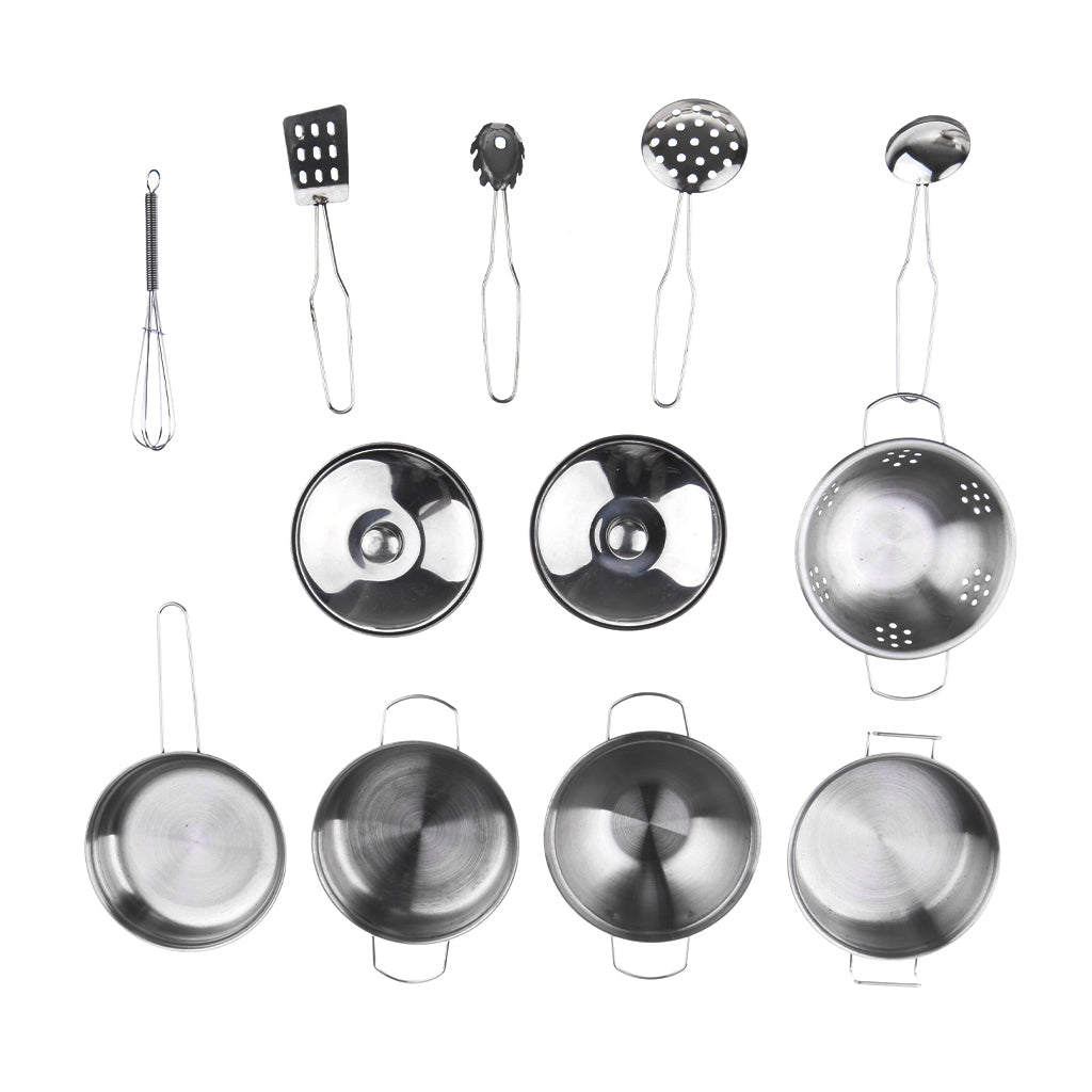 Kids Stainless Steel Kitchen Cookware Toy Pretend Play Toy - C (Set of 12 pieces, includes colander, 2 pots and 2 pans with 2 lids, 5 cooking utensils)
