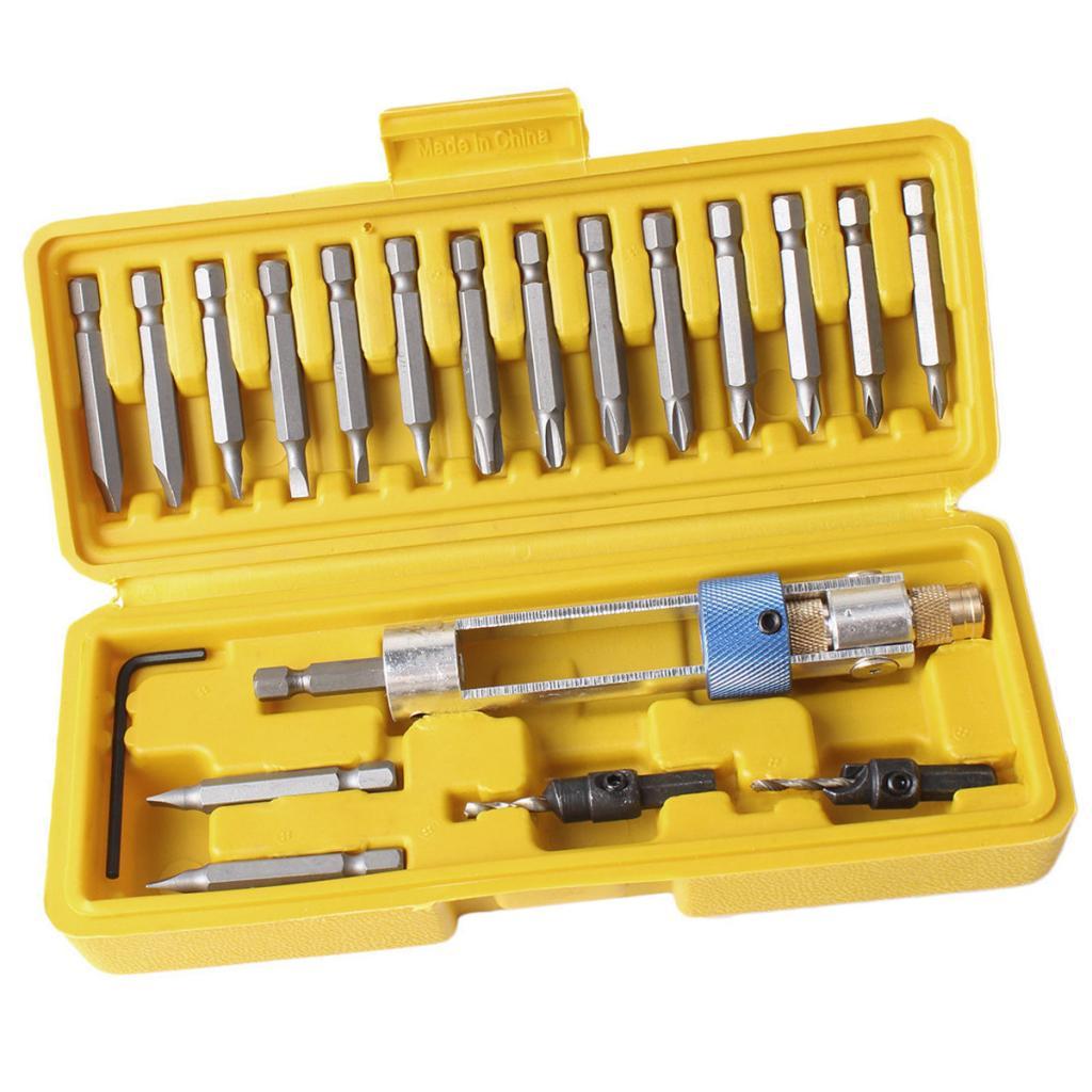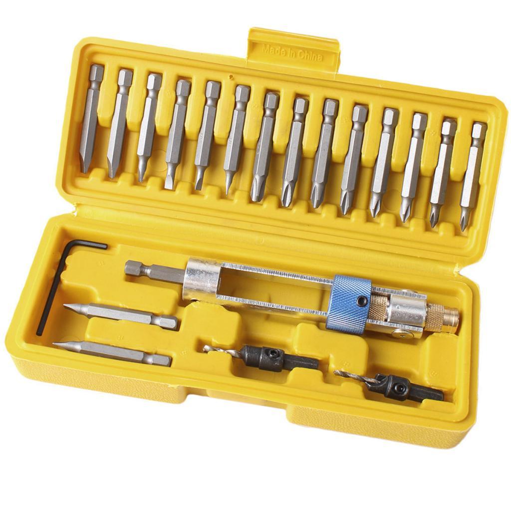 Includes 8 Phillips bits, 8 slot bits and 2 countersink bits in a plastic box, meeting different demands