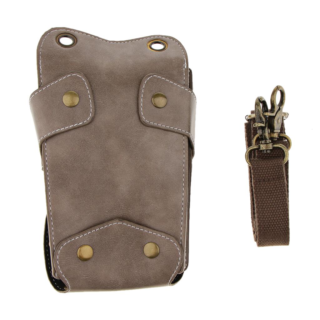 Leather Barber Scissors Shears Combs Clips Tools Holder Pouch Waist Bag Gray