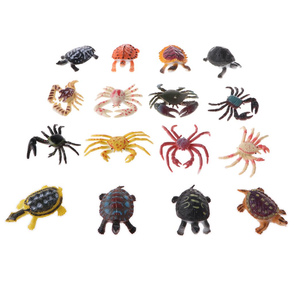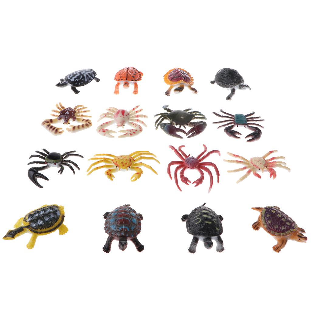 Lots of 16 Pieces PVC Tortoise Crab Models Figures Kids Educational Toy Party Bag Fillers