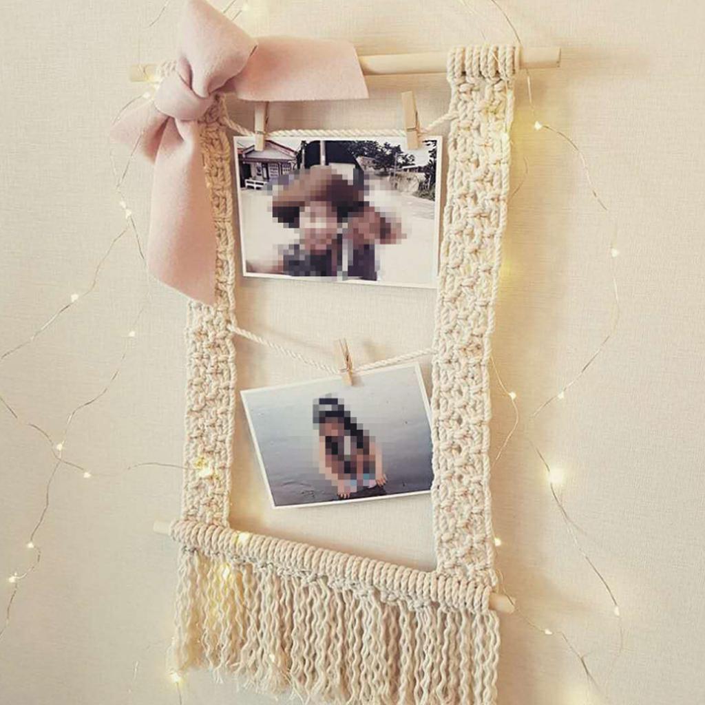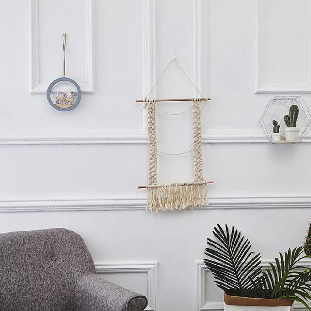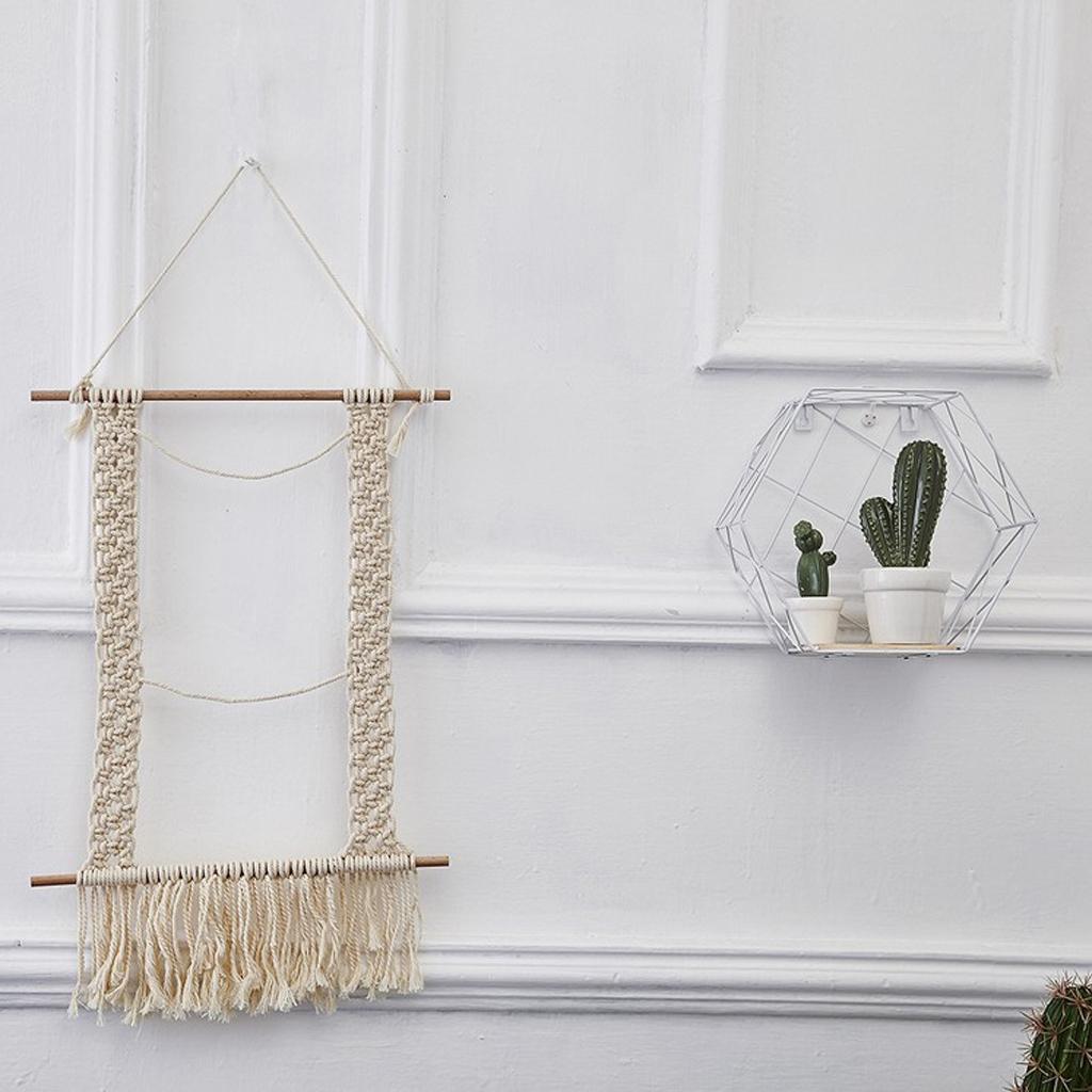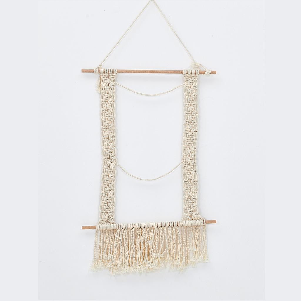 Macrame wall hanging is set on wood dowel with high quality ECO cotton rope.