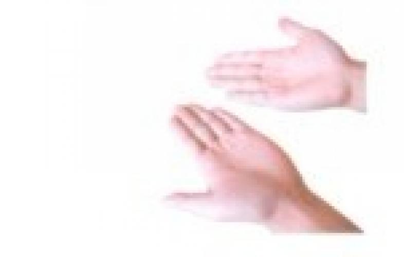 Step Four: cover the coin with your right palm gently and open your index finger and middle finger at the same time. Then the coin will automatically rebound to the disappear device on your wais
