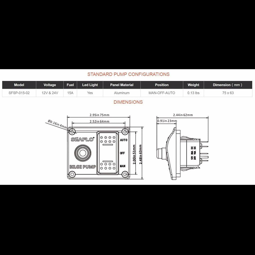 Toggle has three positions (Automatic, Off, or Manual) and has a "fail safe" spring to return the switch to "off" from the "manual" position, so the pump can not accidentally be left on.