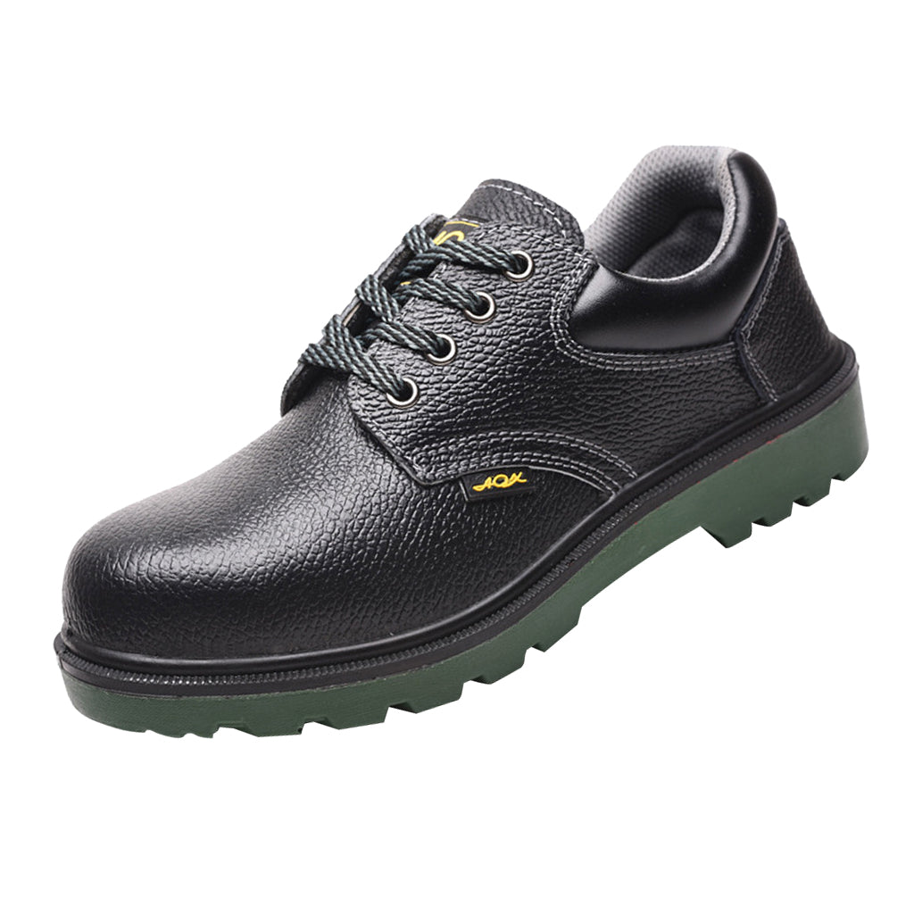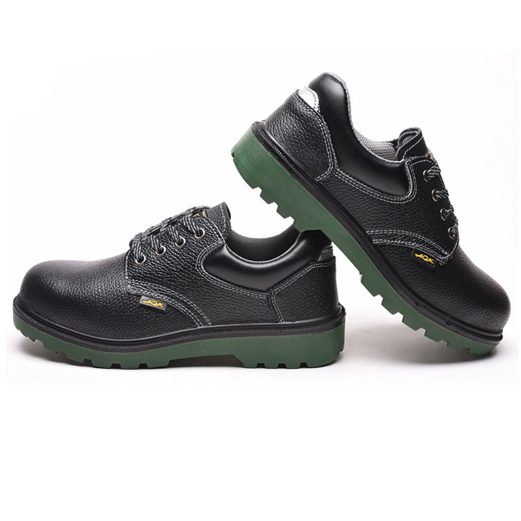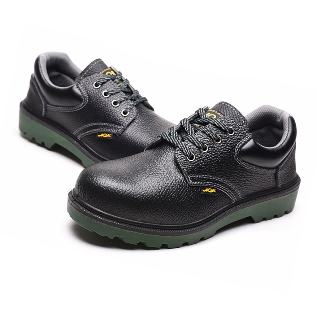 Steel toe work boots for toe protection, steel plate midsole for shoe stability.