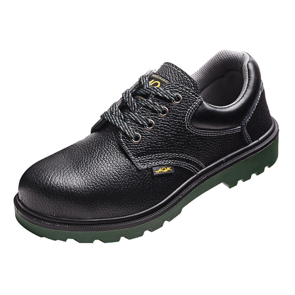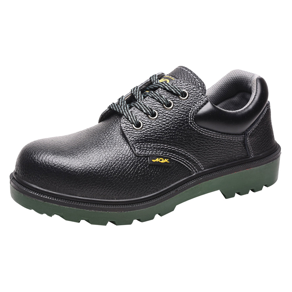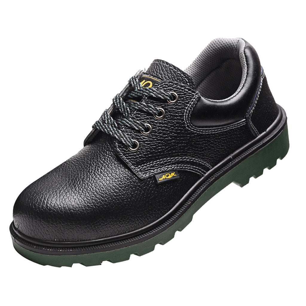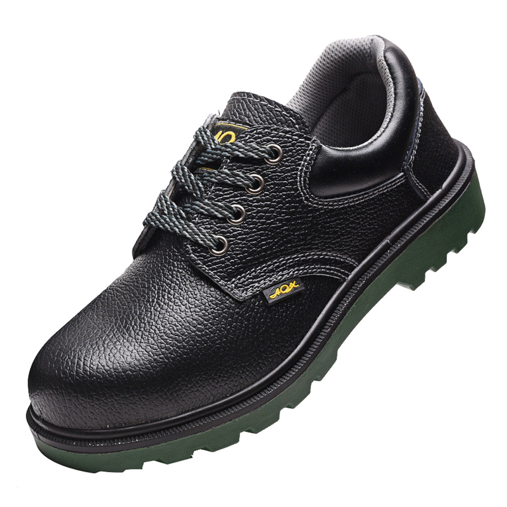 Steel toe work boots for toe protection, steel plate midsole for shoe stability.