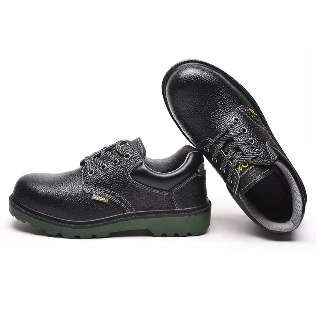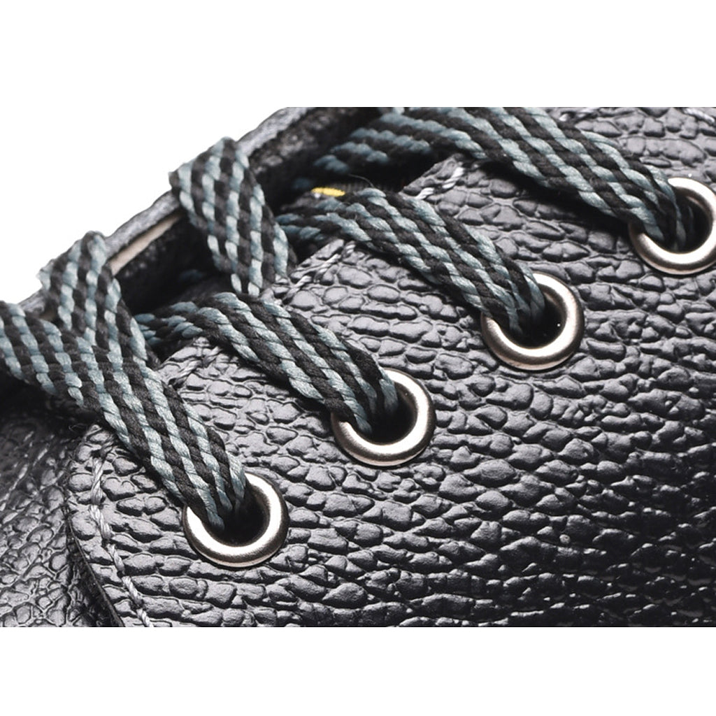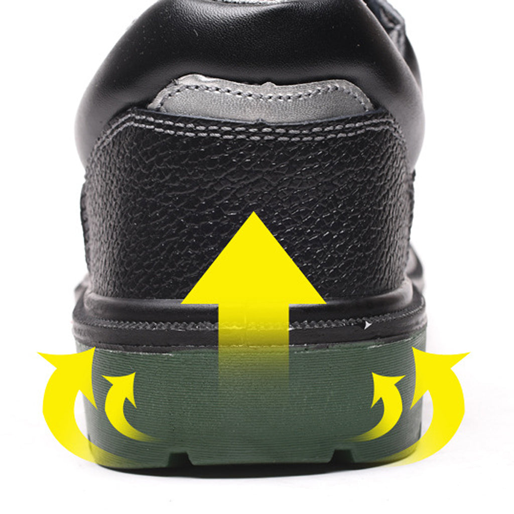 Steel toe work boots for toe protection, steel plate midsole for shoe stability.