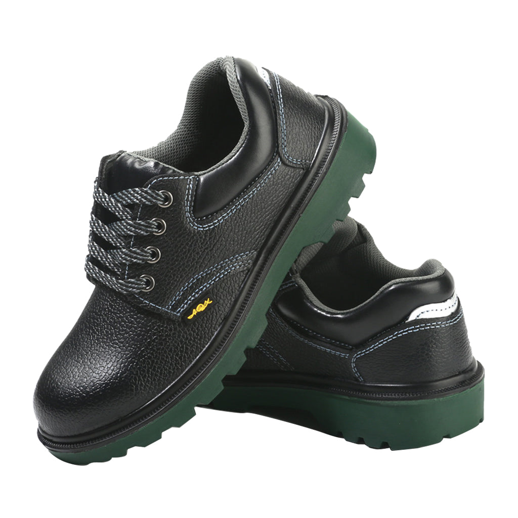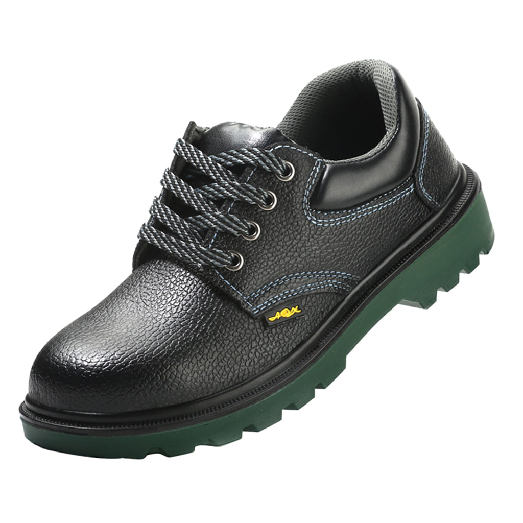 Steel toe work boots for toe protection, steel plate midsole for shoe stability.