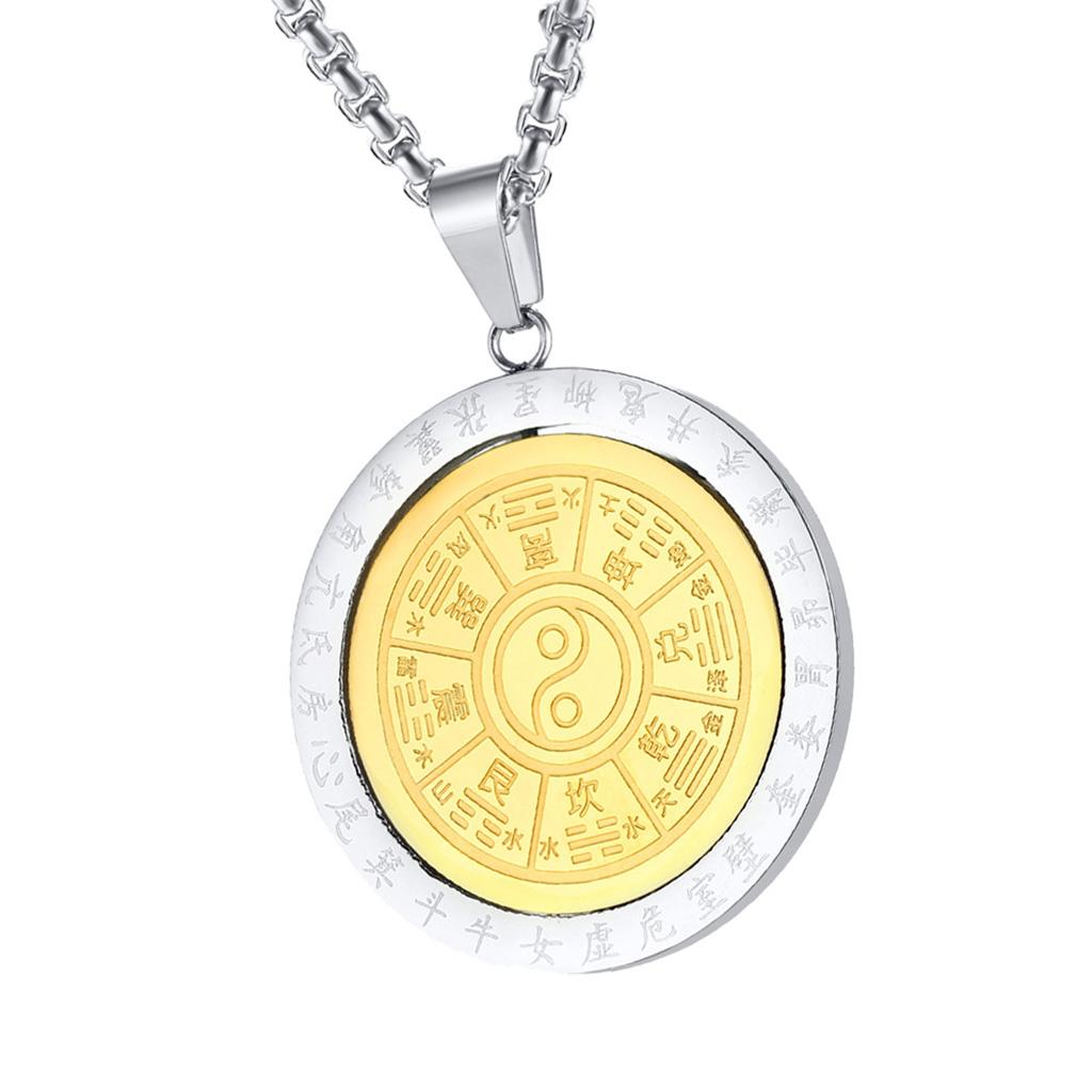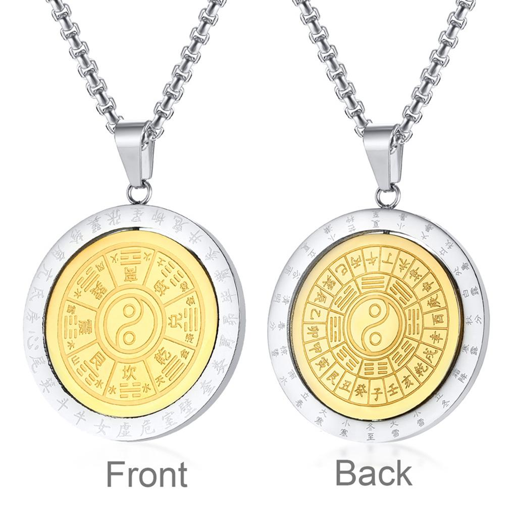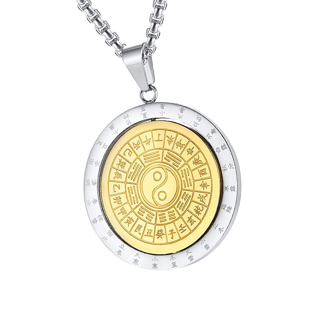 High polished stainless steel engraved with Yin-Yang taiji Bagua Pendant,it can 360 rotate