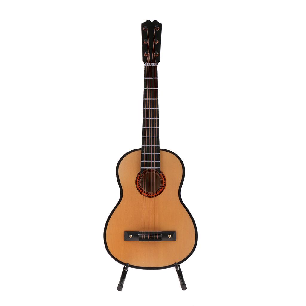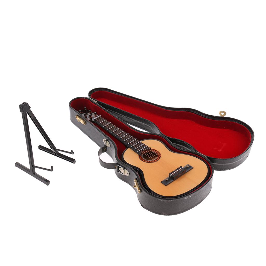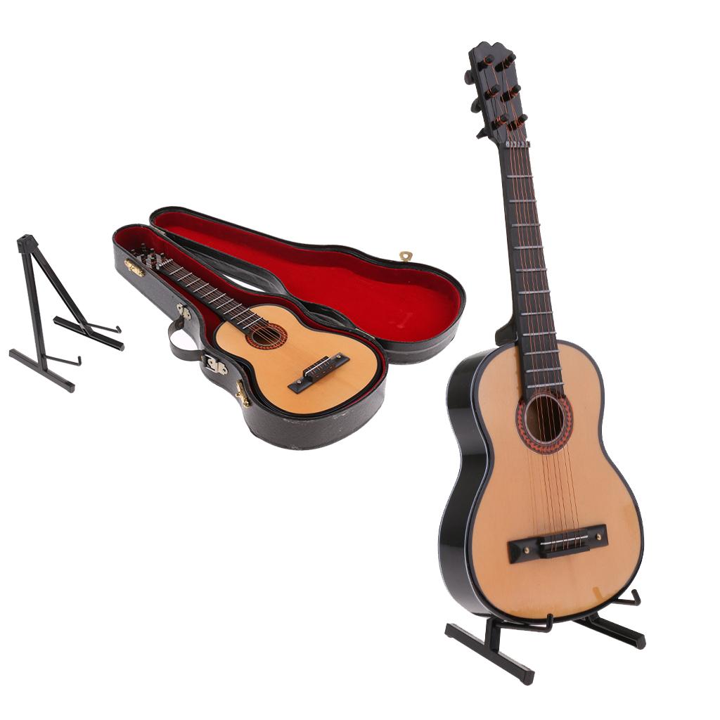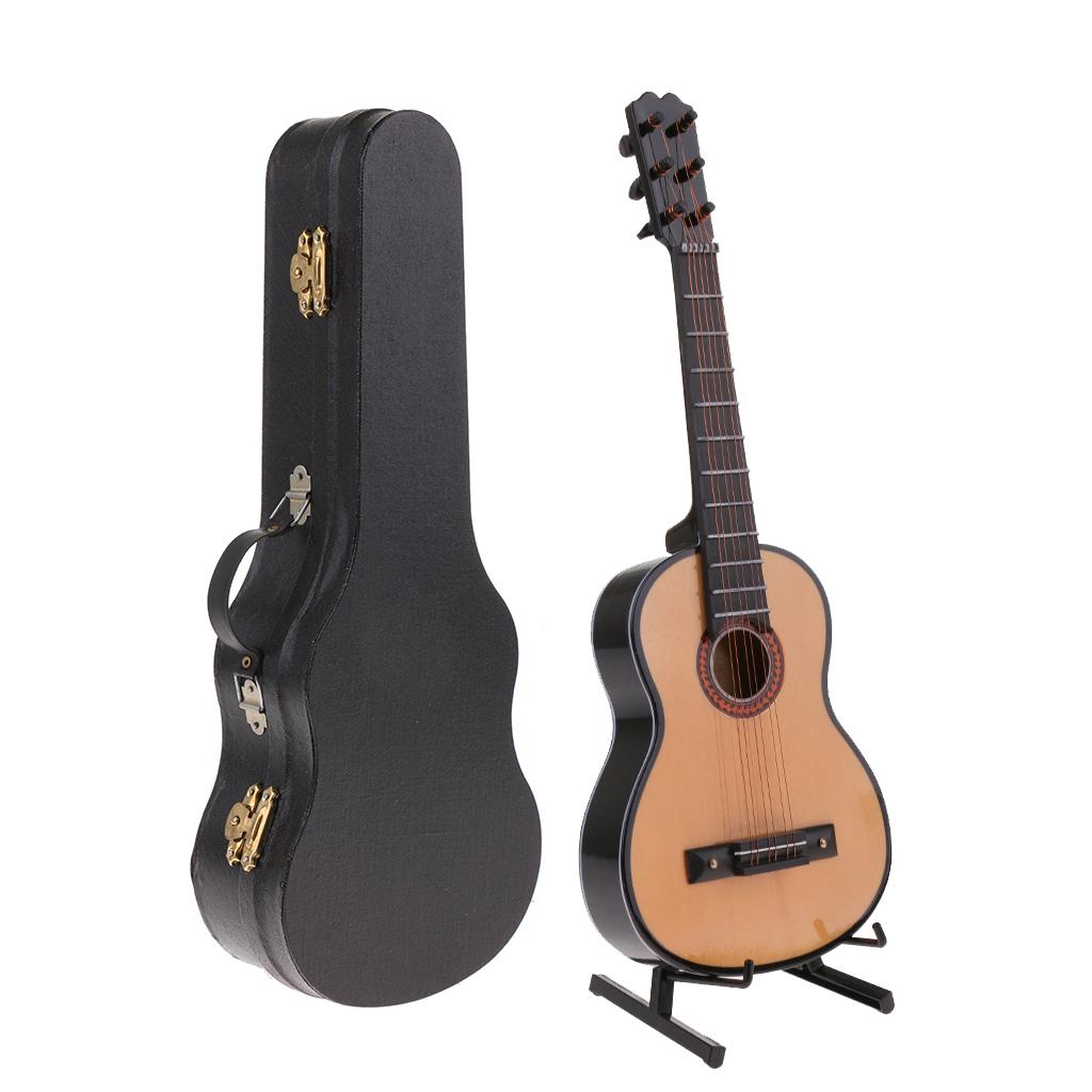 Miniature Wood Guitar Music Instrument Model with Box and Support