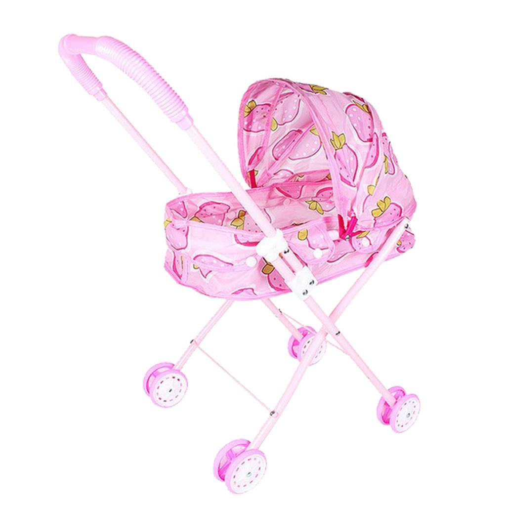 30cm dolls' mini plastic outdoor baby buggy pram push cart pushchair trolley dolls accs - strawberry pattern