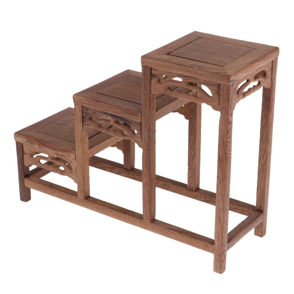 Miniature 3 Layer Bonsai Shelf Display Table for 1/12 Dolls House Furniture Life Scenes Accessories