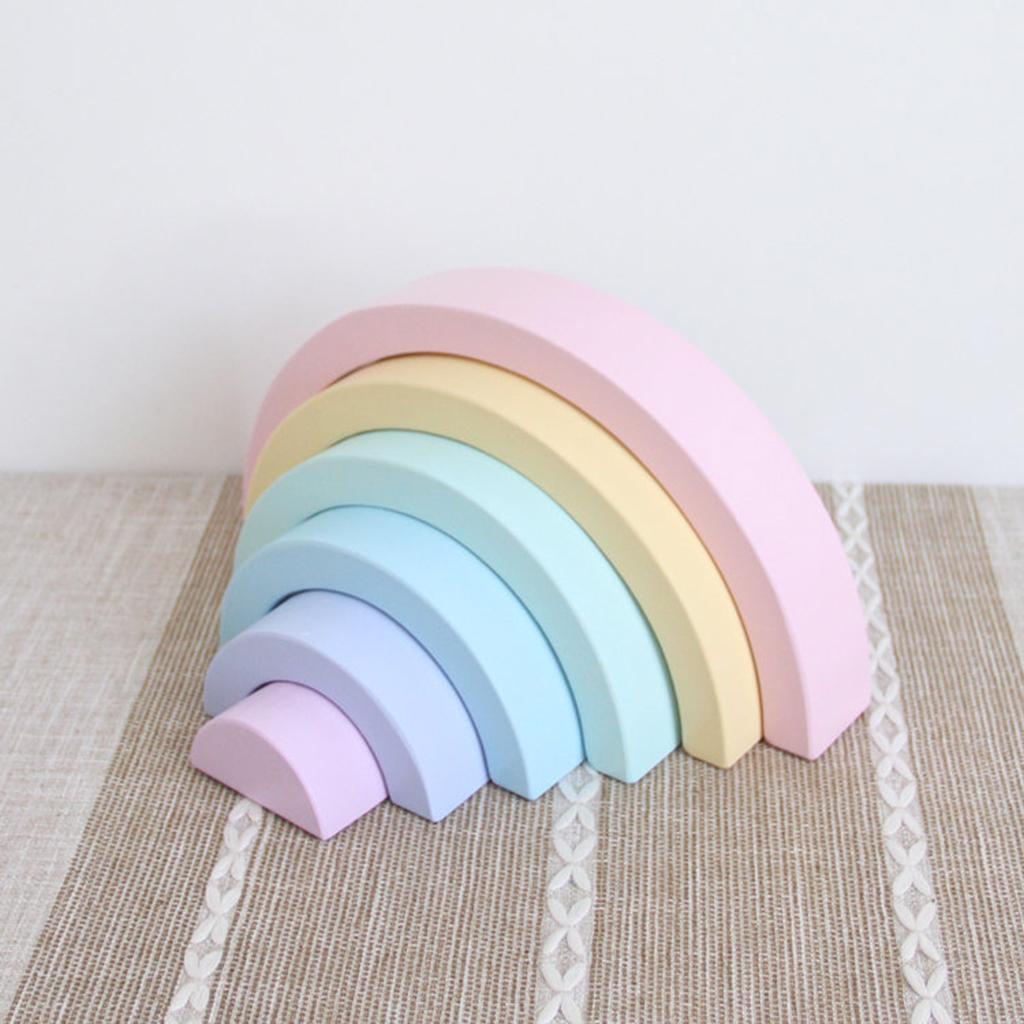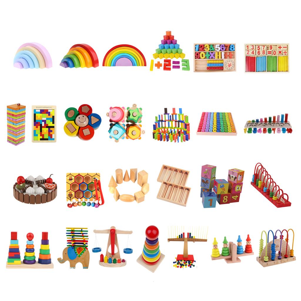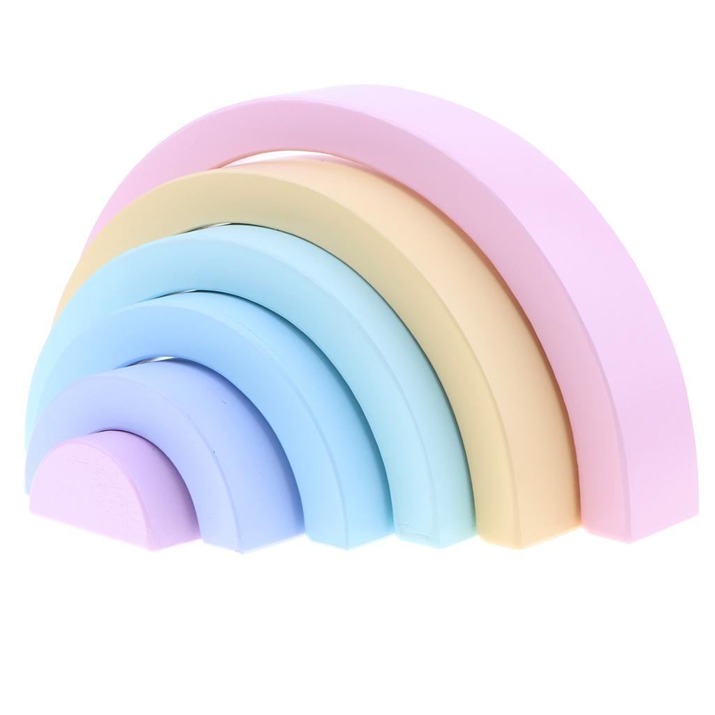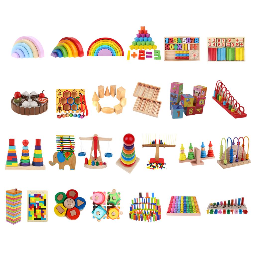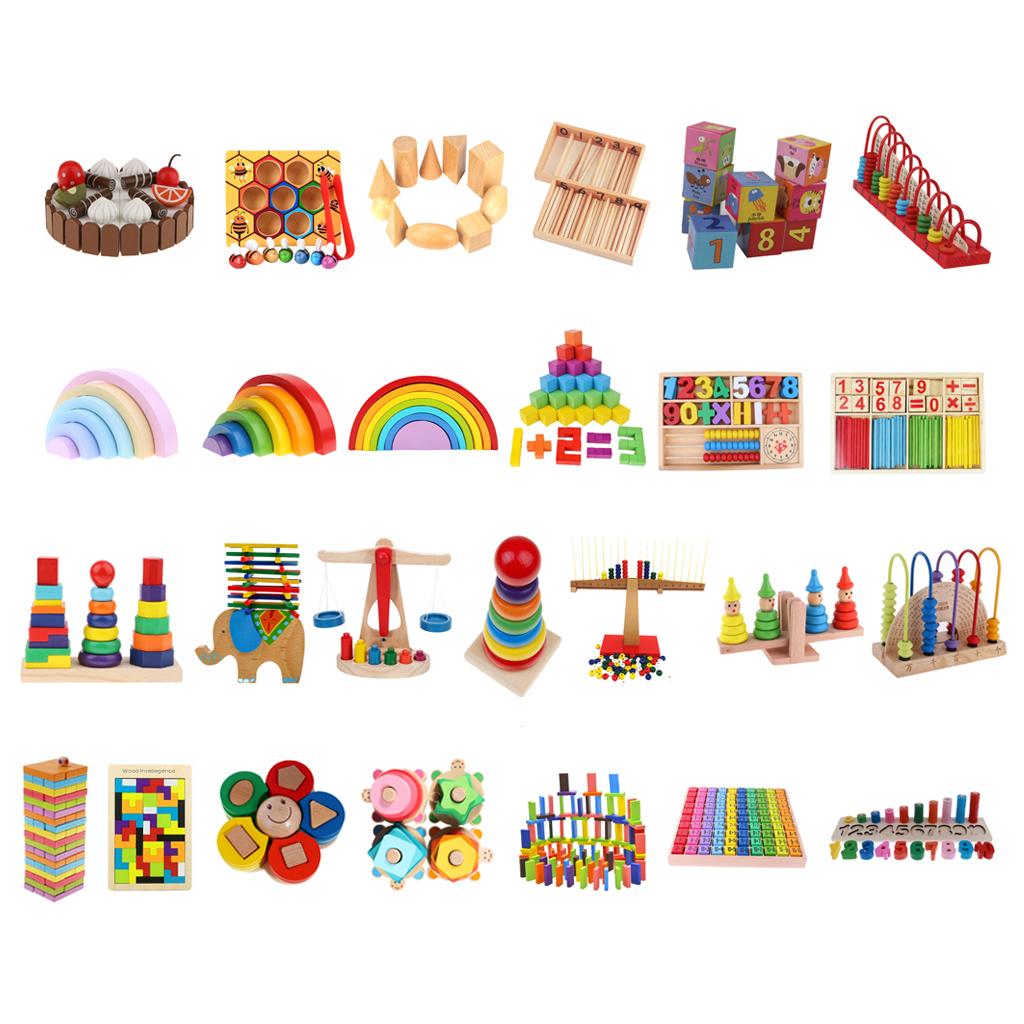 Montessori Wooden 6 Colors Stacking Game Blocks Kids Children Toy Set