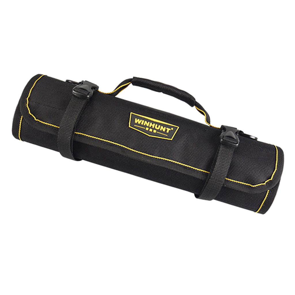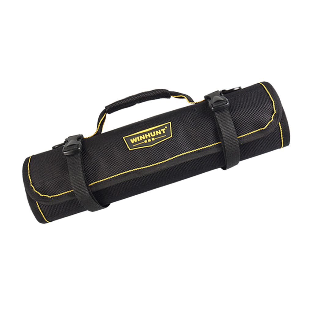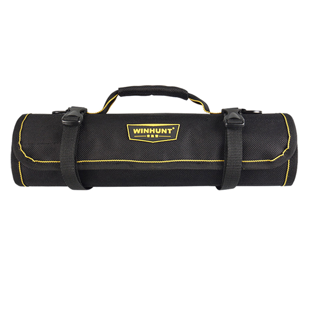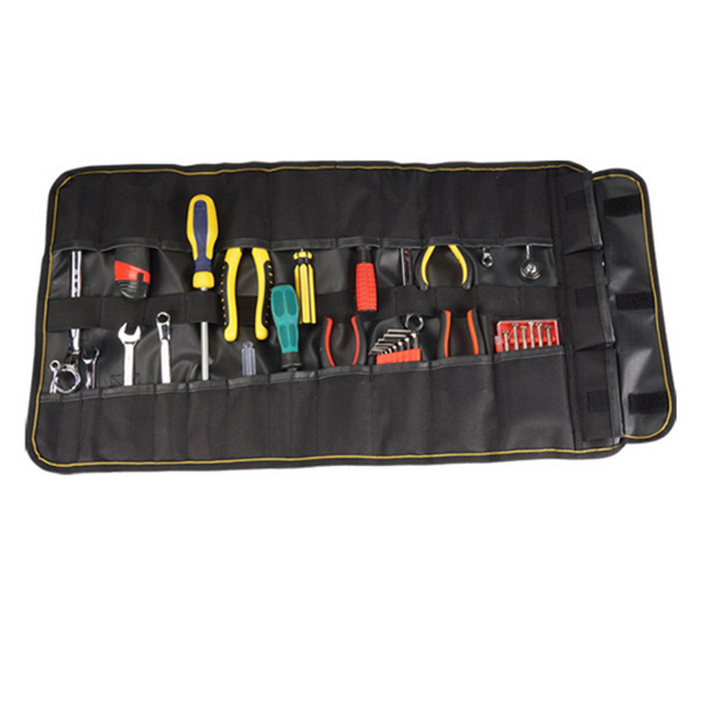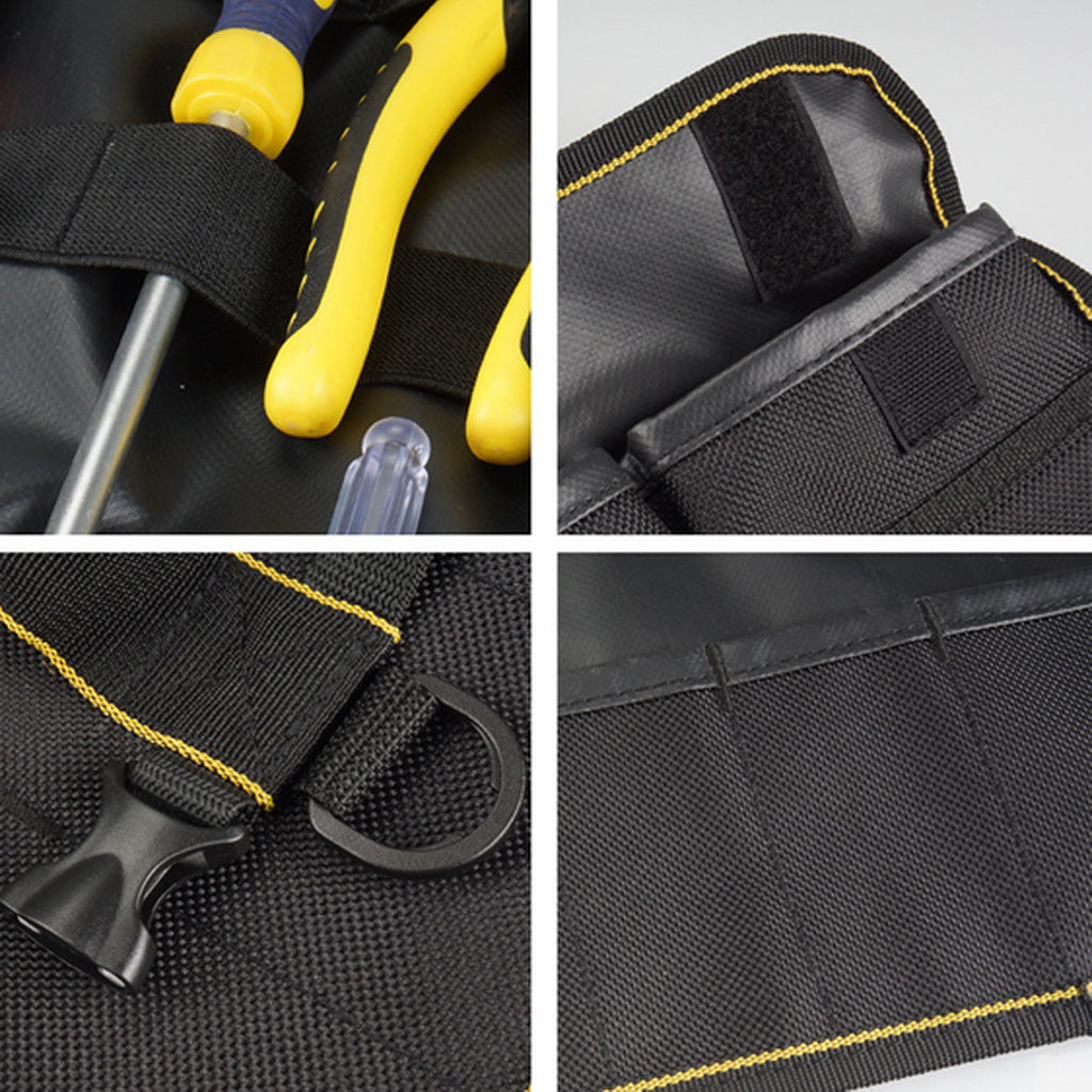 With many pockets, with side pocket for keeping small objects, outside loops for putting wrench, ratchet handle or other tools.