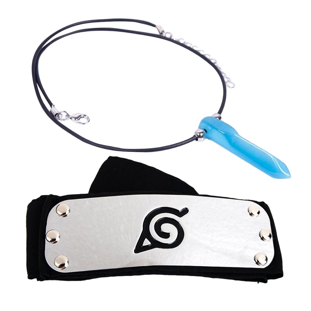 Naruto Shippuden Jinchuuriki blue charms necklace pendant Konoha head band combo anime cosplay accessories