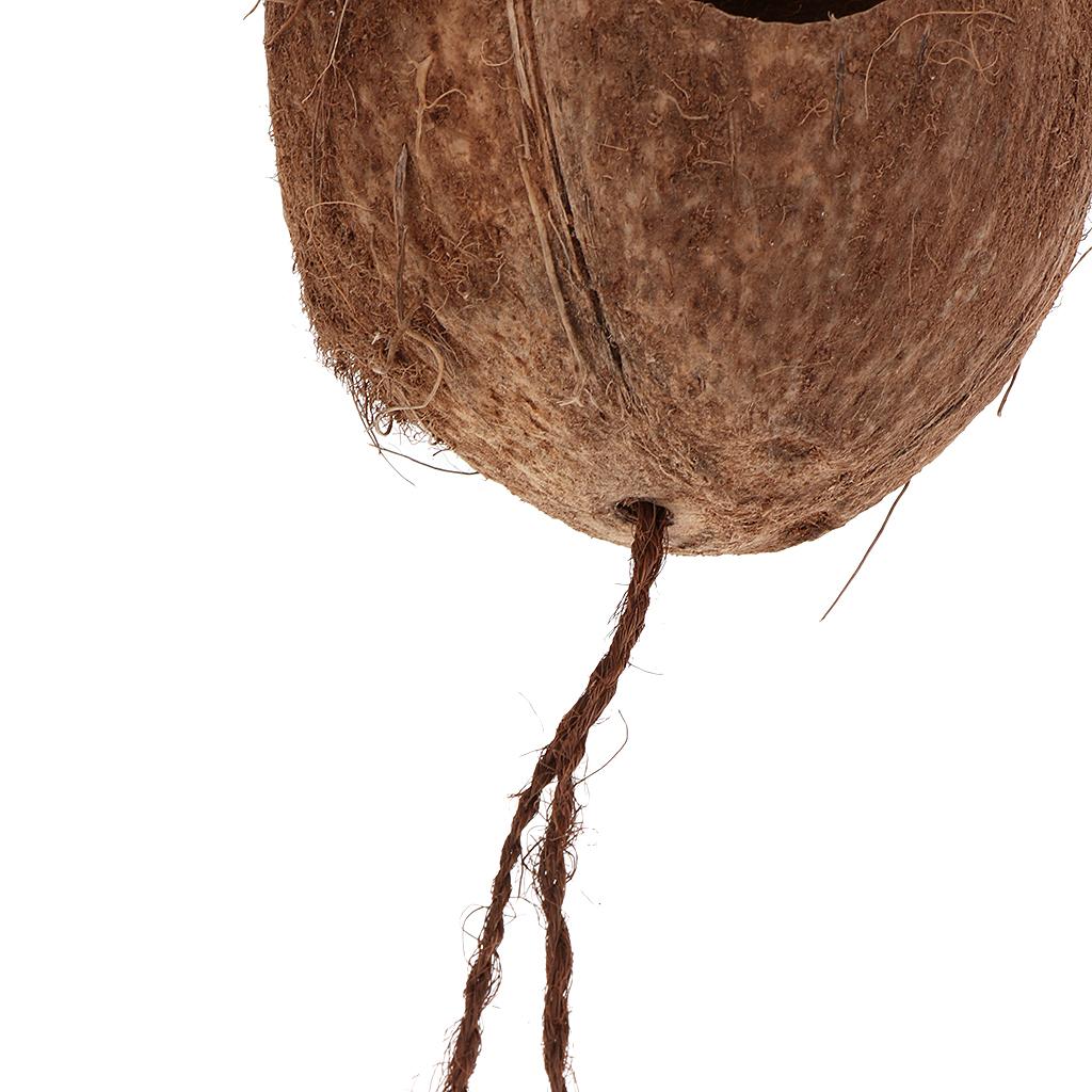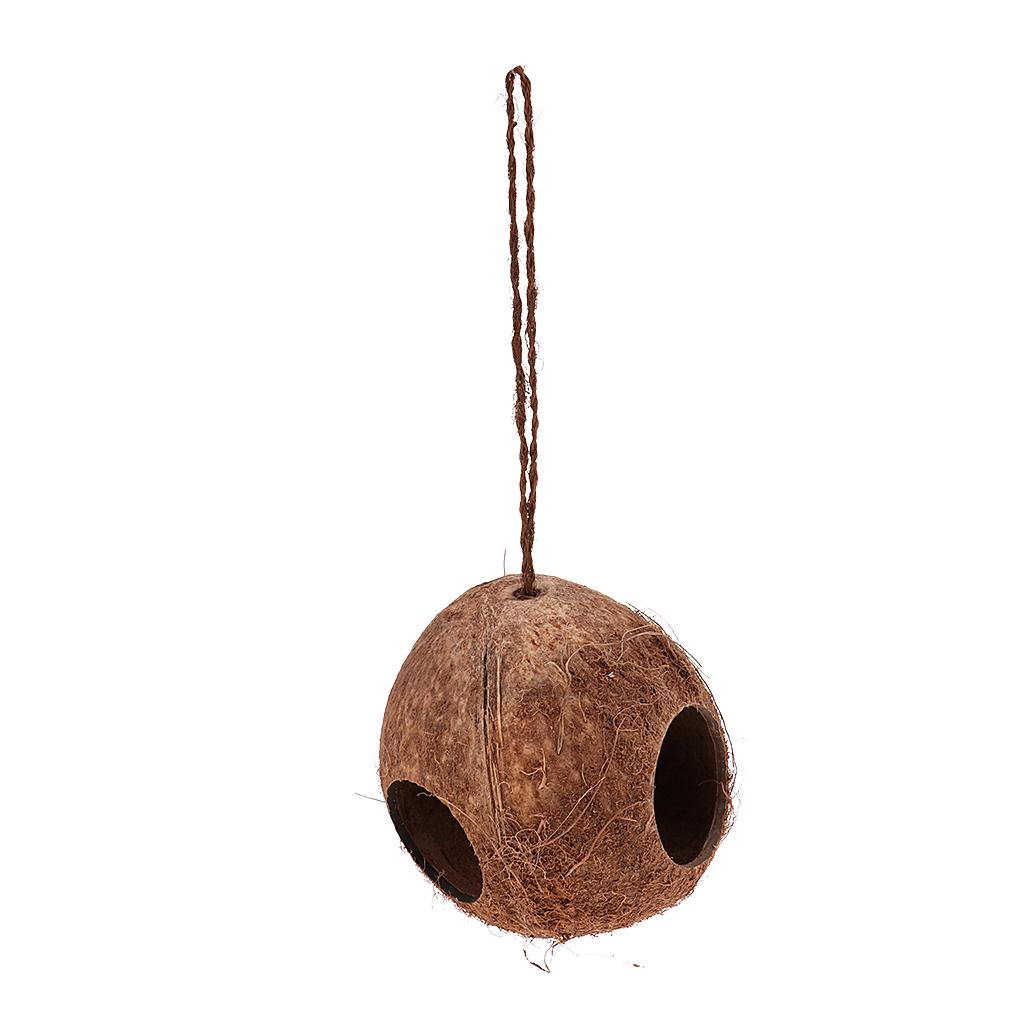 This coconut shell bird house provides the perfect hollow space for placing treats and bird seed.