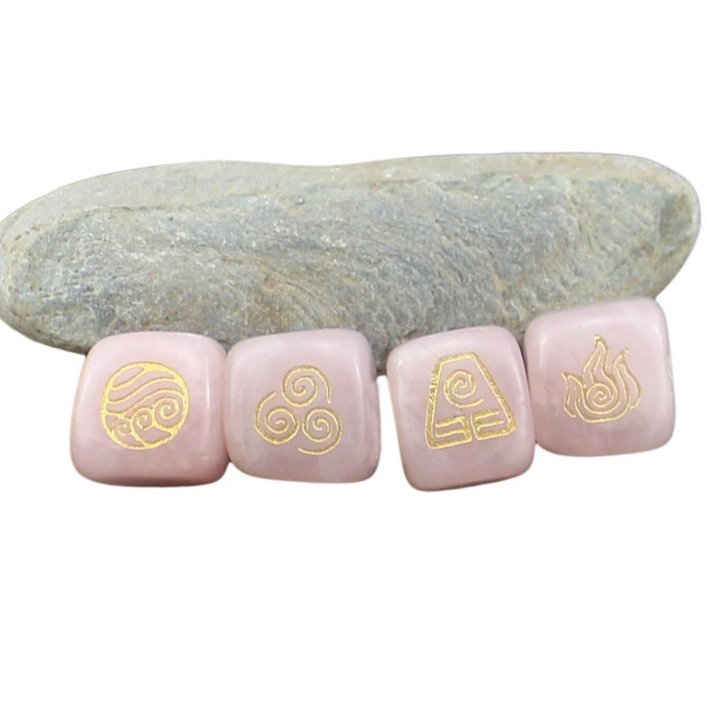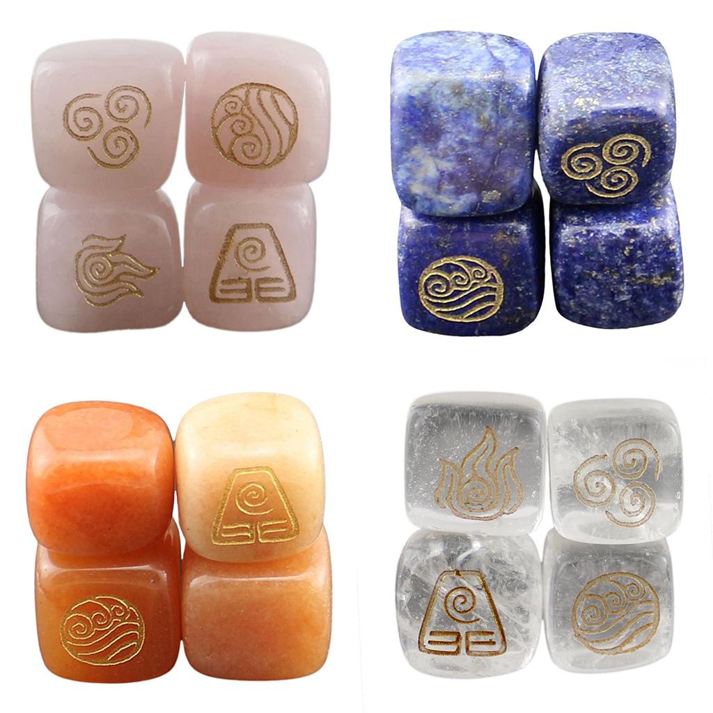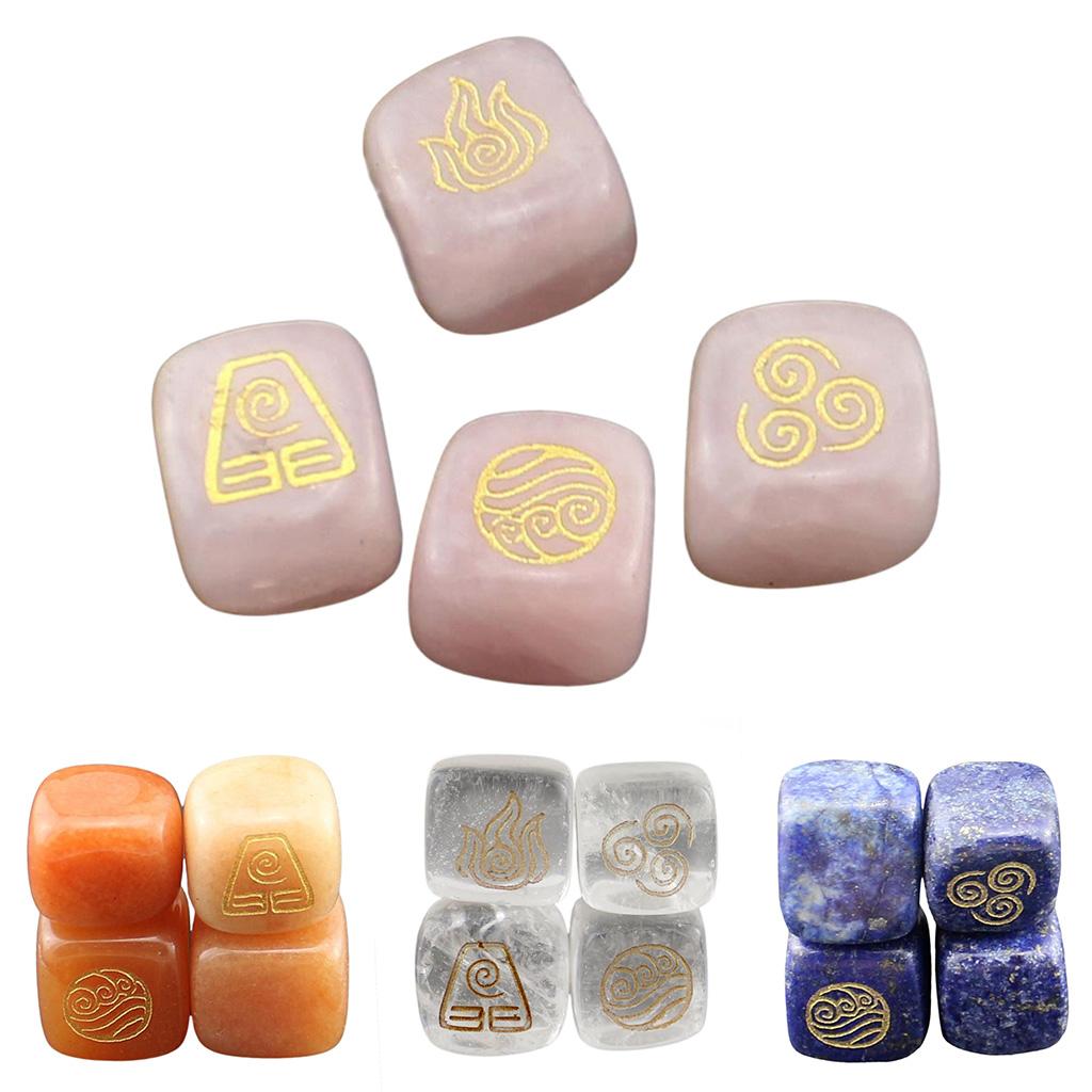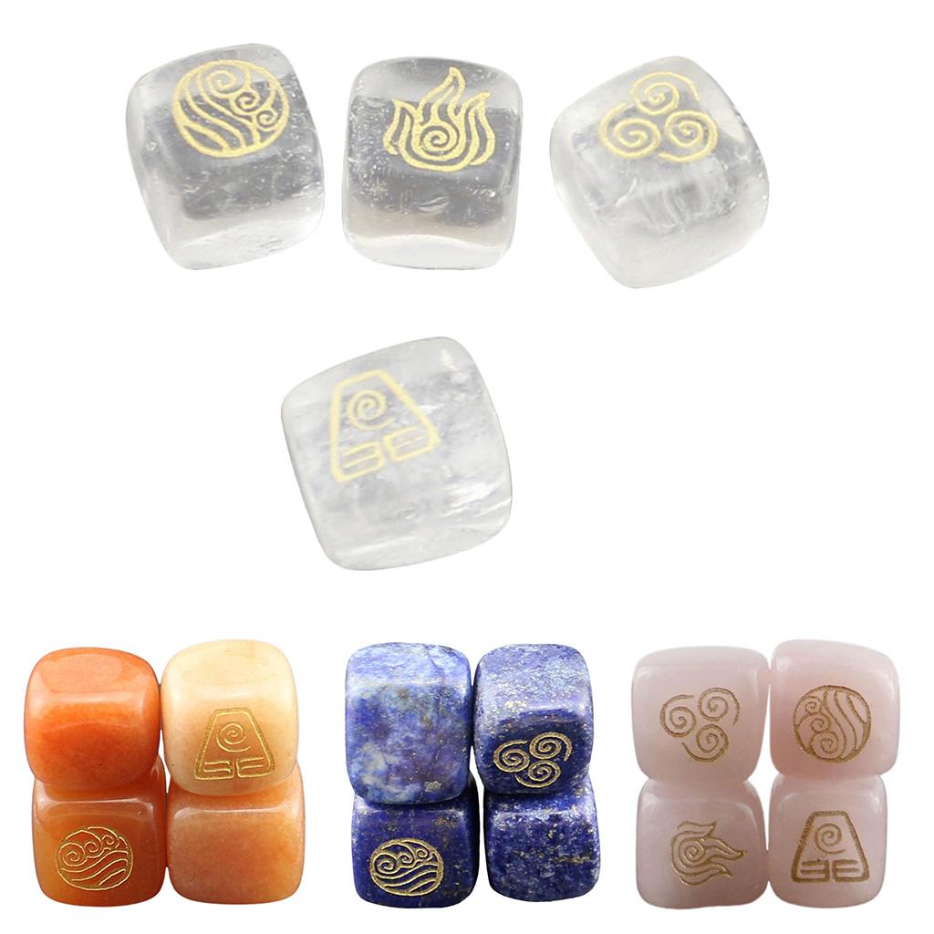 Natural Powder Crystal Stone Polished Fire Water Wind Soil Engraved Runes