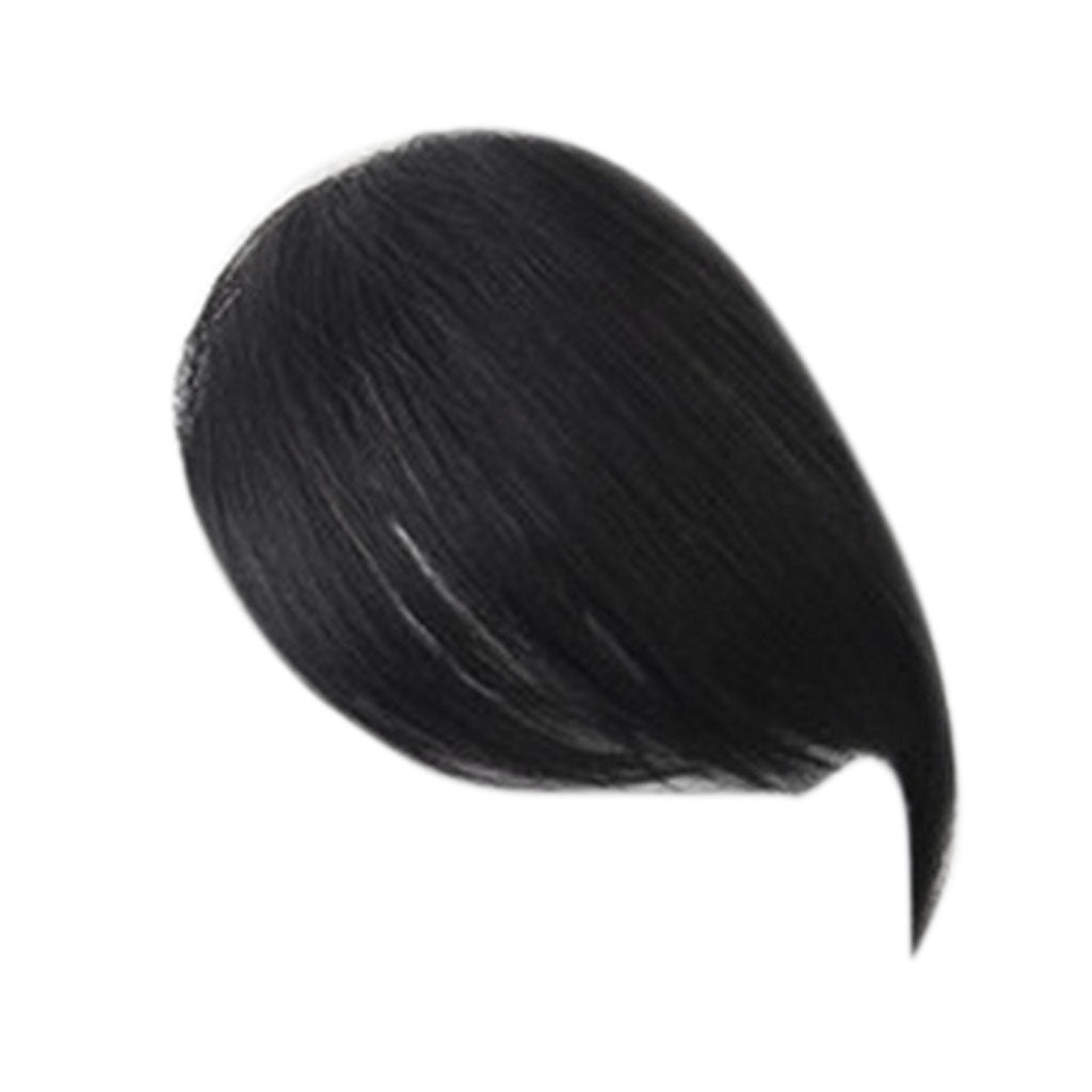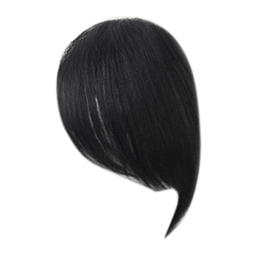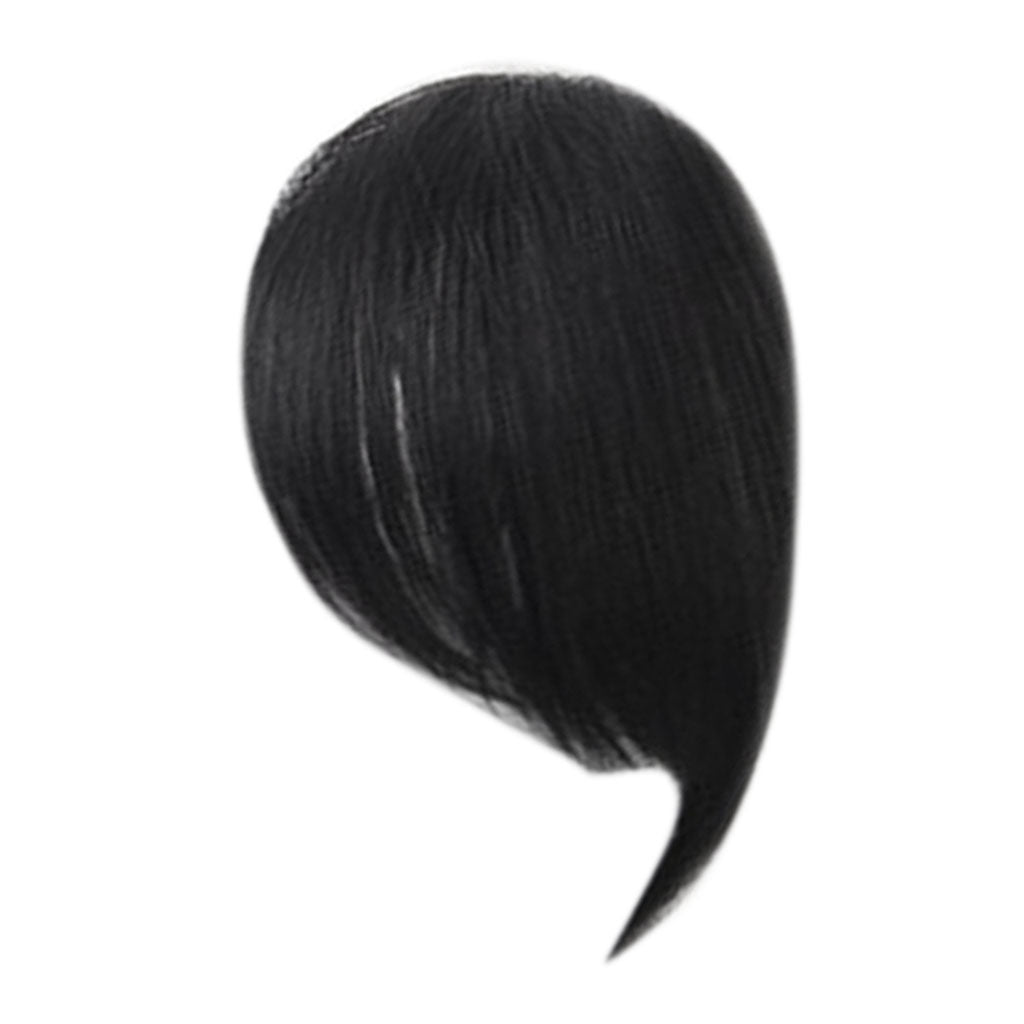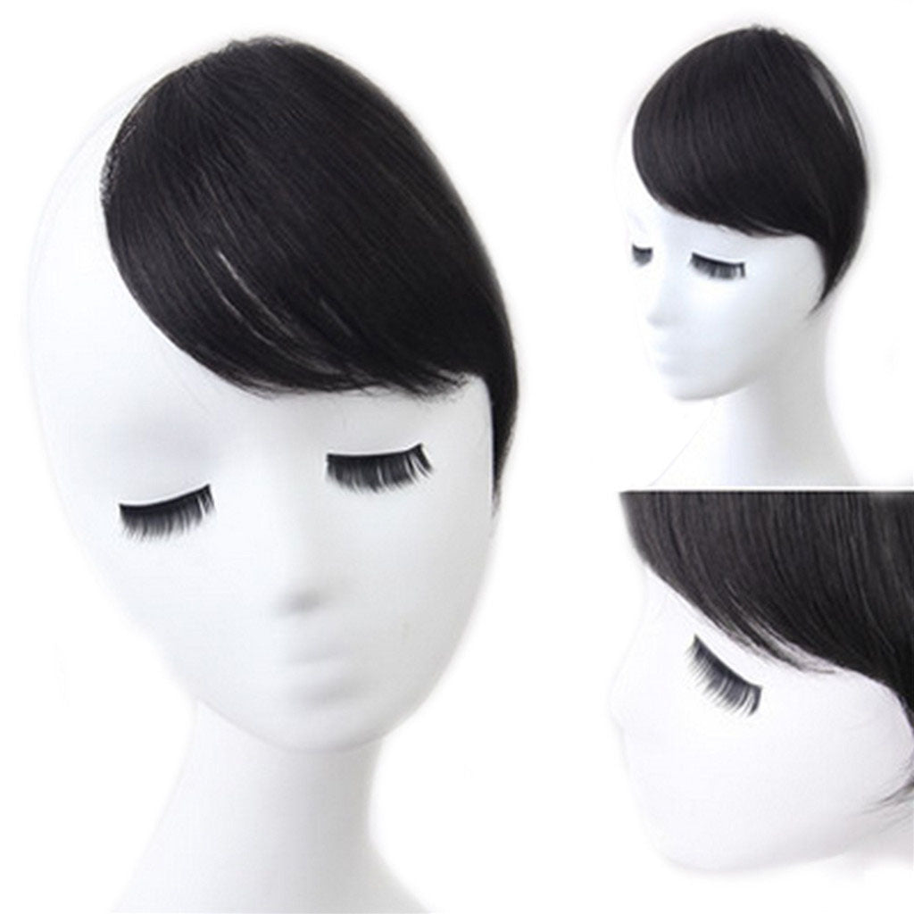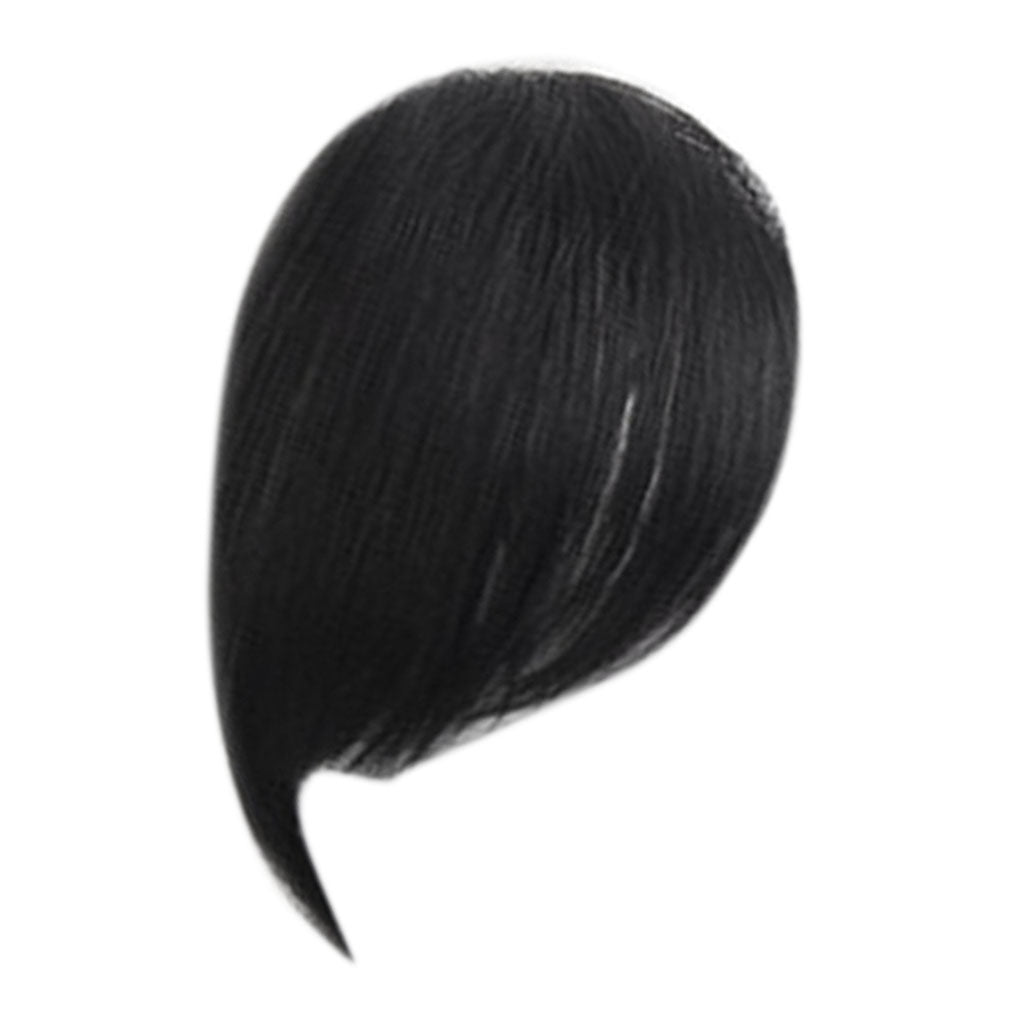 Clip On Bangs Human Hair Side Swept Fringe Extension Front Clip-in Hairpiece Black.