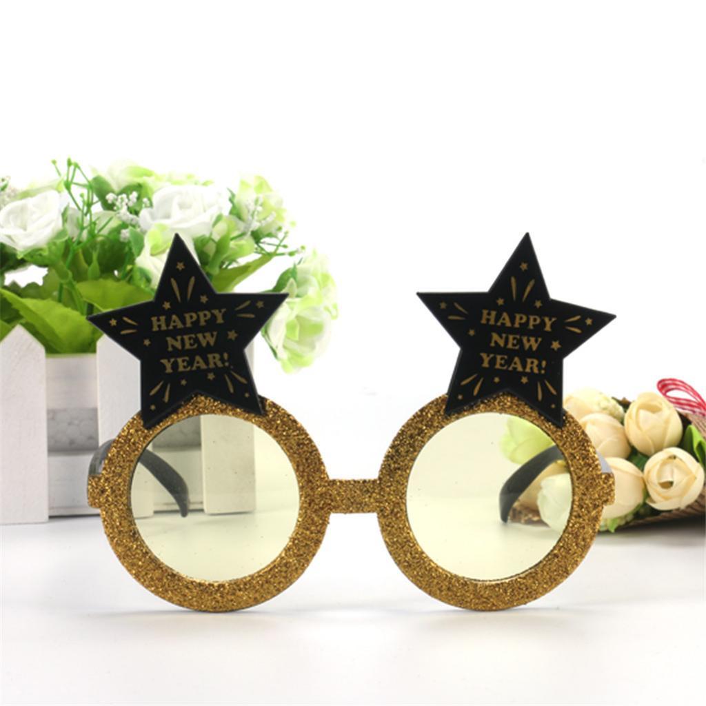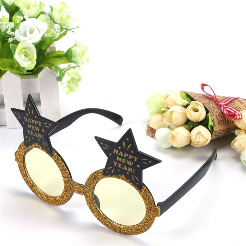 Novelty Glitter Gold Star Shaped Happy New Year Sunglasses Adults Kids Party Glasses