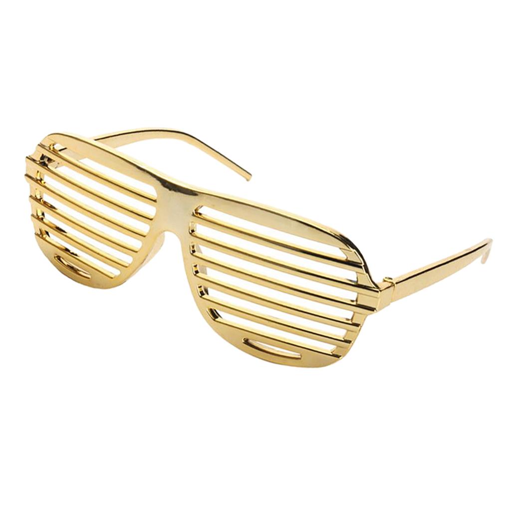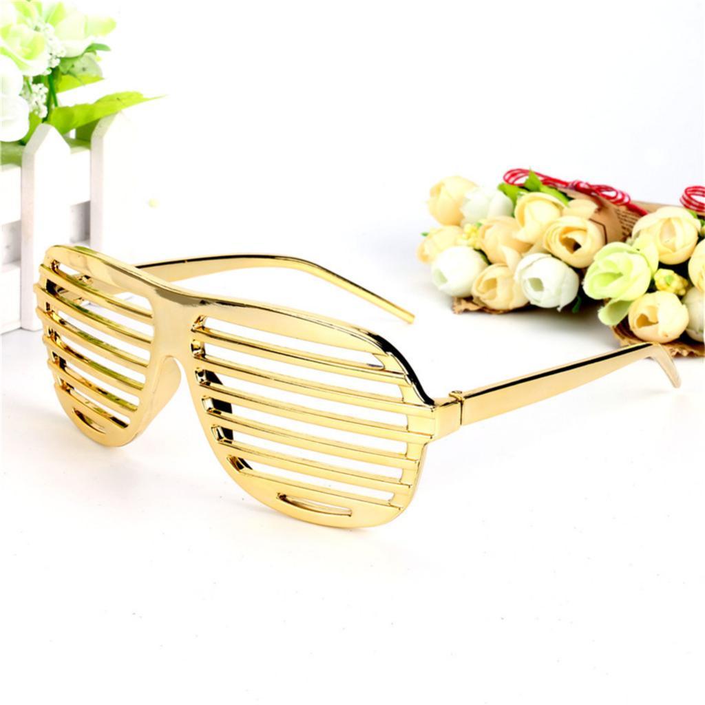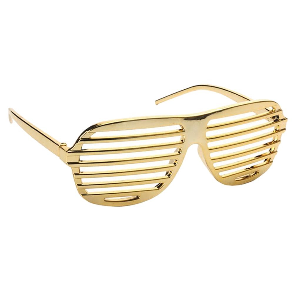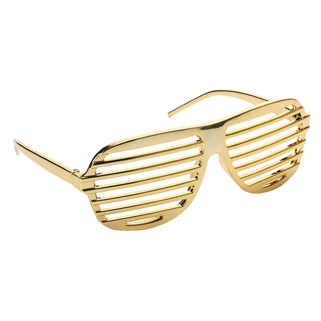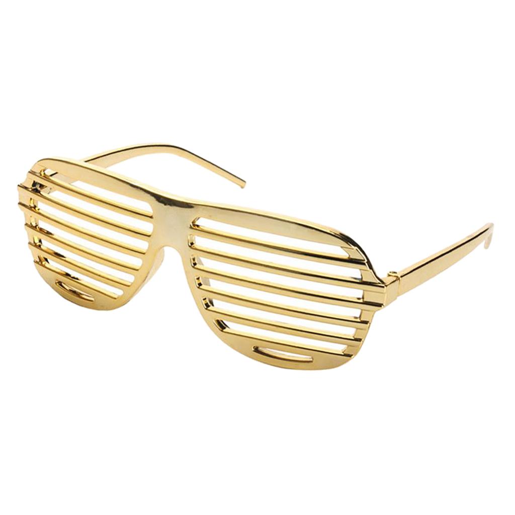 Funny party sunglasses designed with shutter shades, gold plated frame