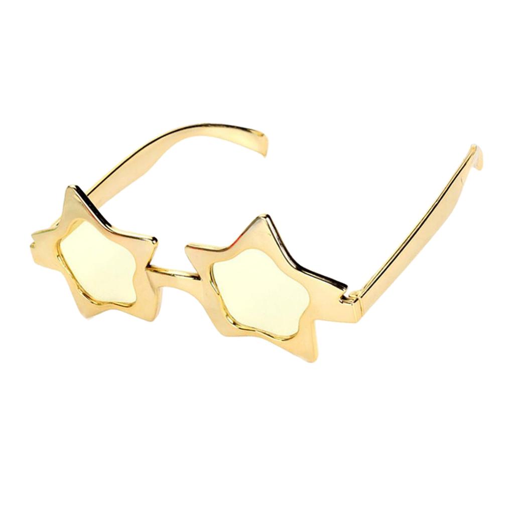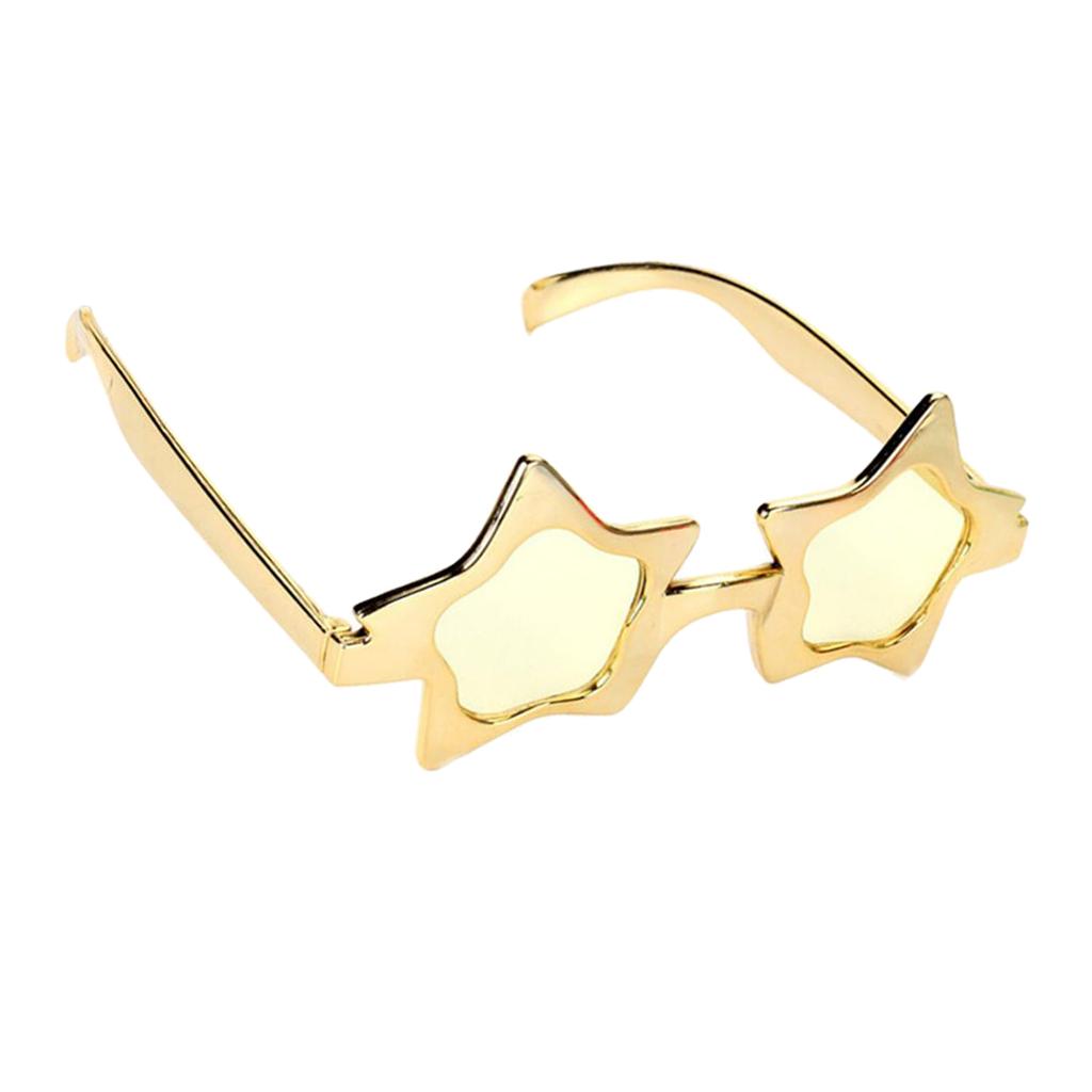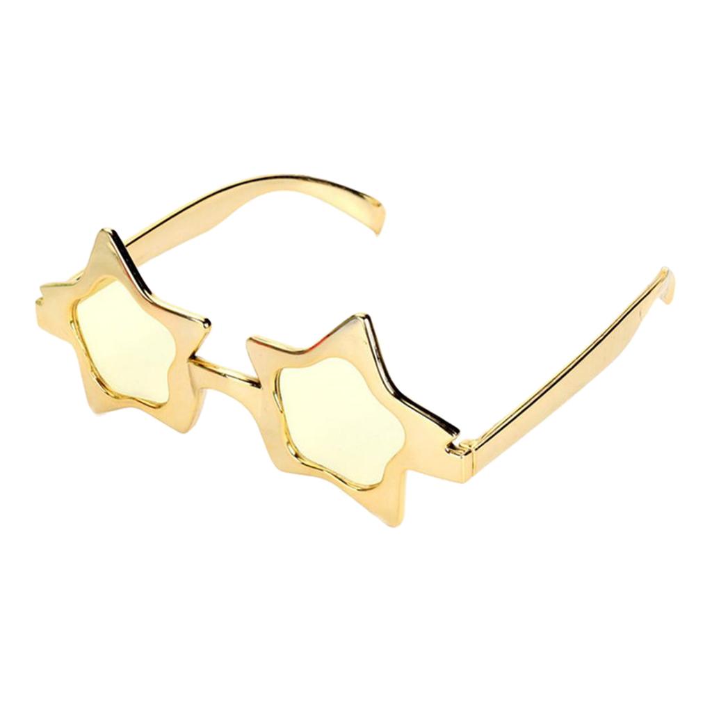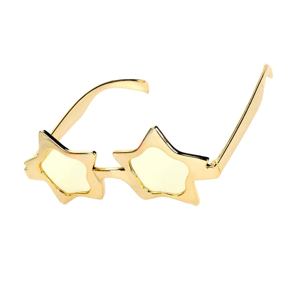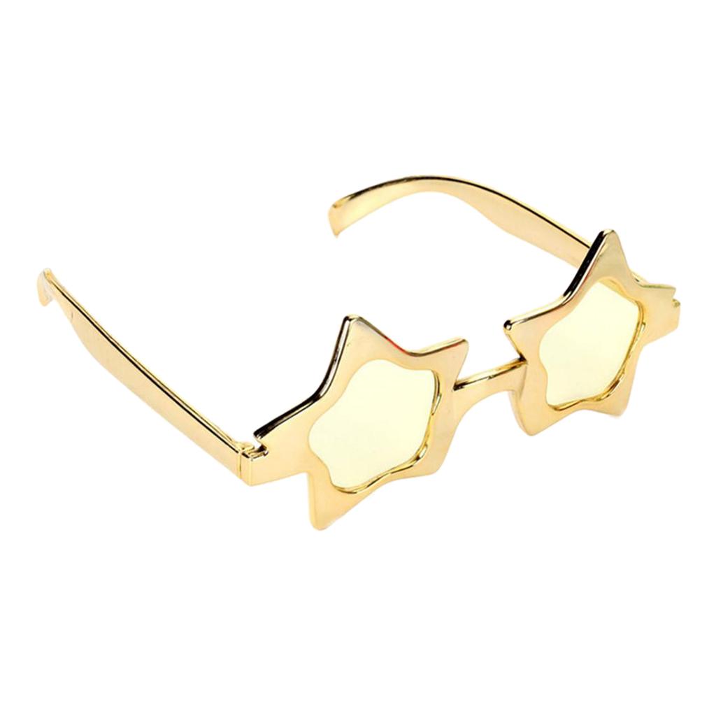 A piece of novelty eye glasses, shiny gold five-point star shaped, simple and cool design