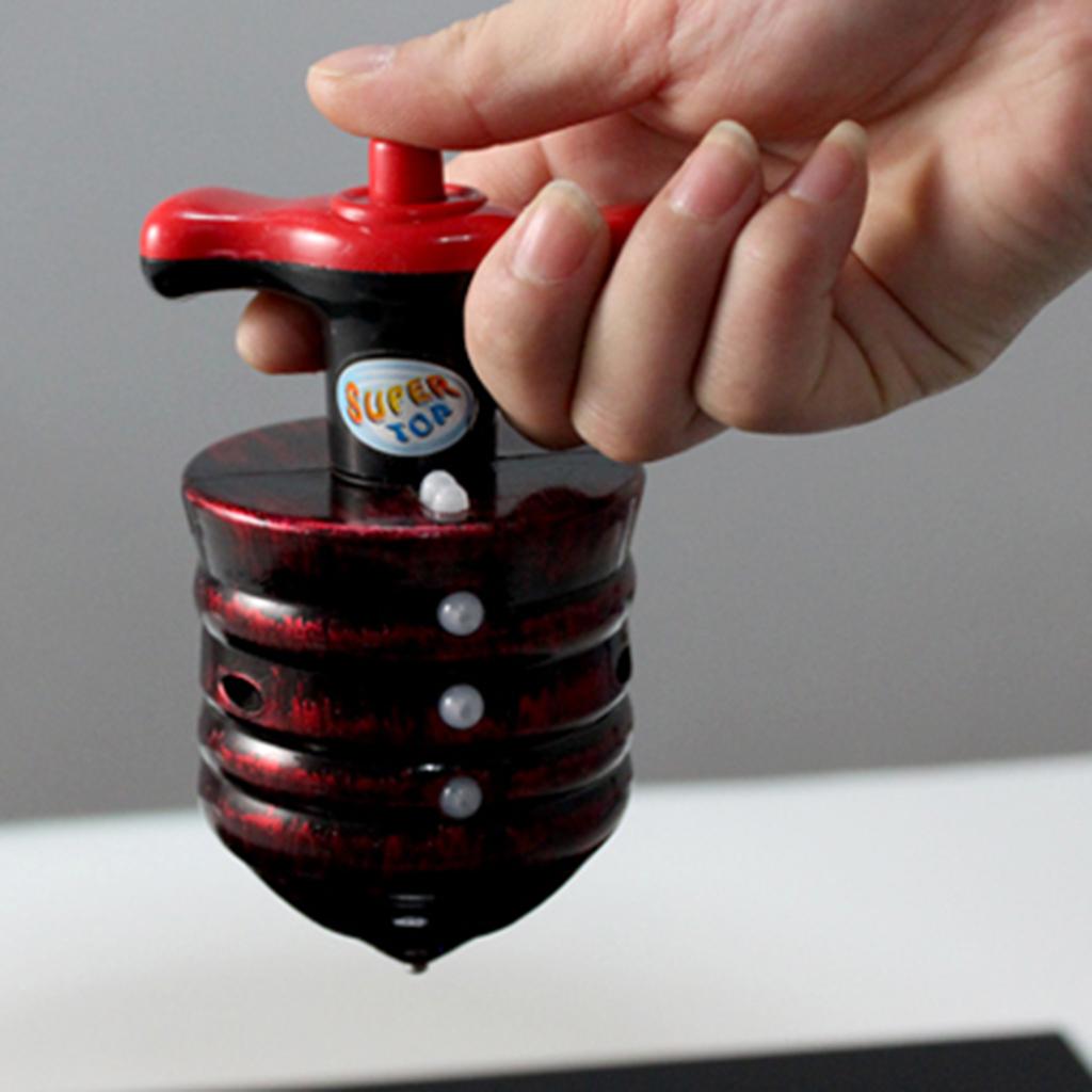 Trun launcher of Top three times, press the button on the top, rapidly rotating with colorful light and music