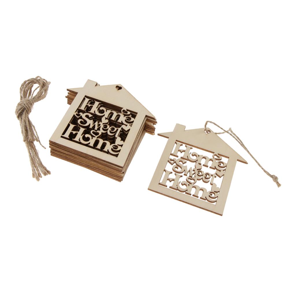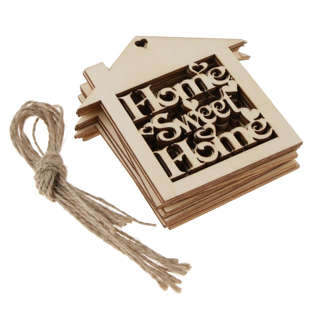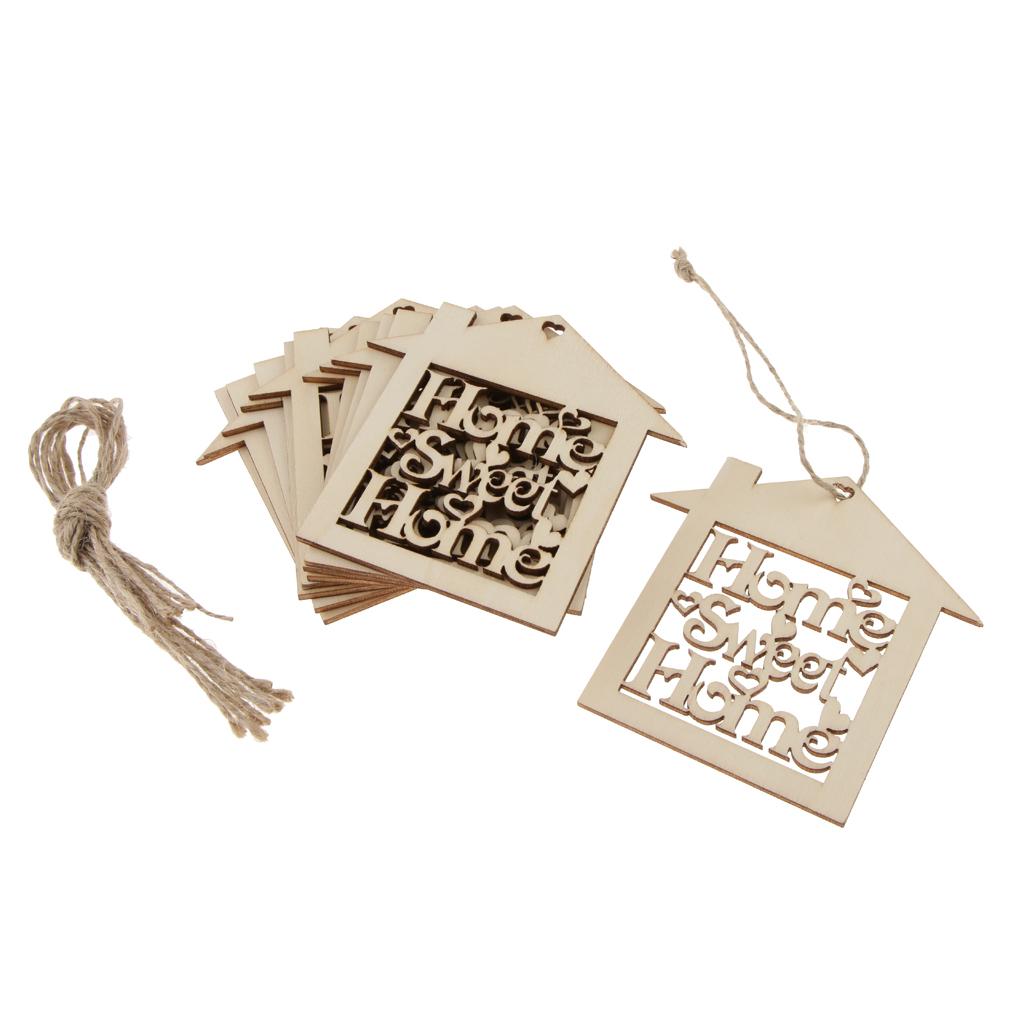 Rustic hollow out home sweet home wood house shape wooden hanging decoration
