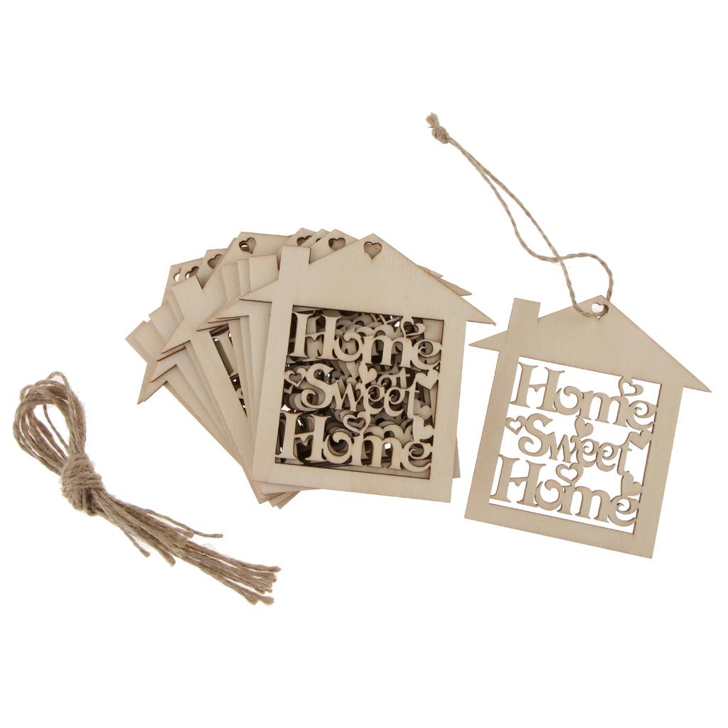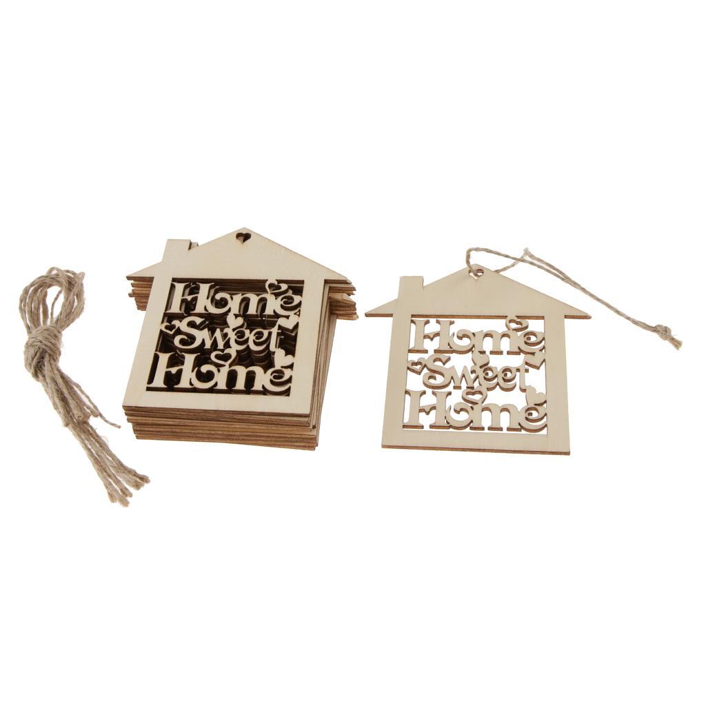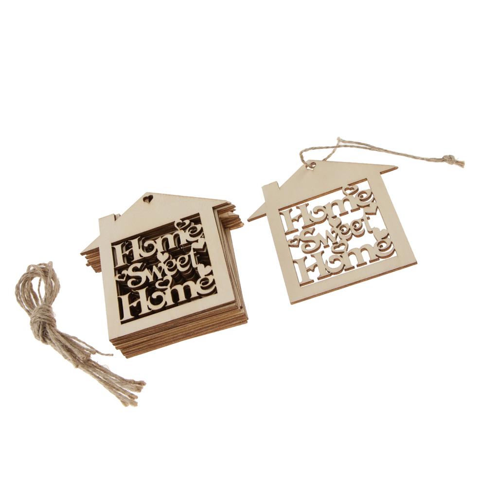 Rustic hollow out home sweet home wood house shape wooden hanging decoration