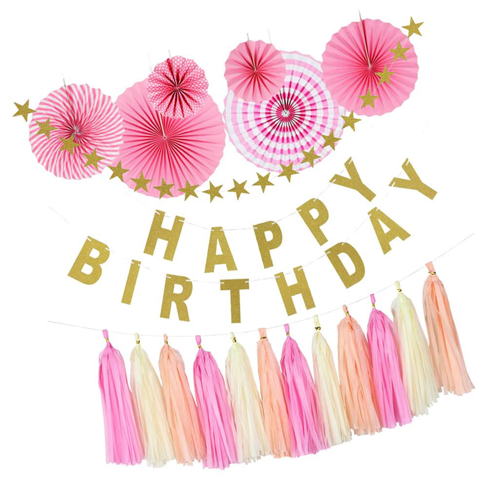 These paper fan ,paper tassels and banner are a great way to celebrate and decorate any birthday party event.
