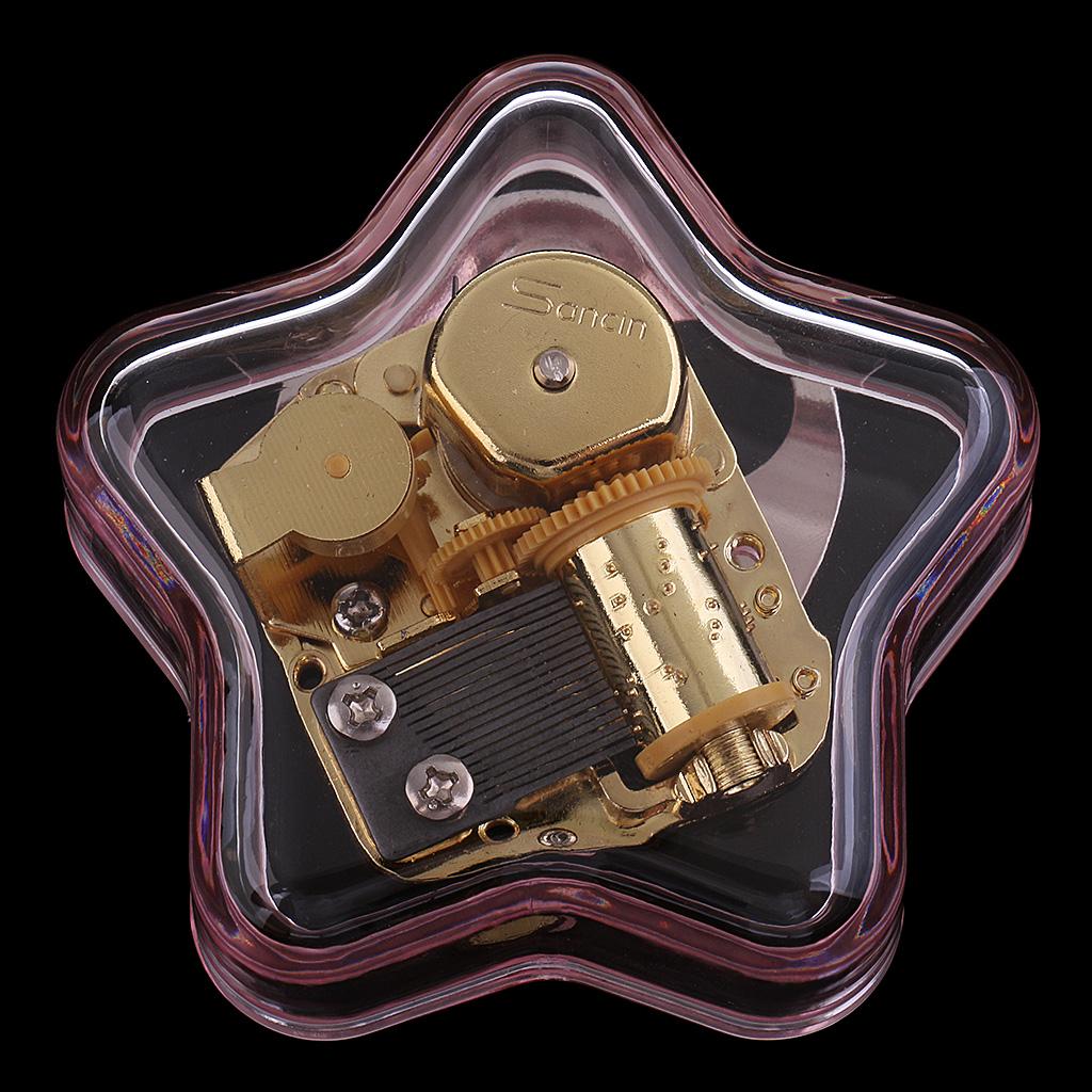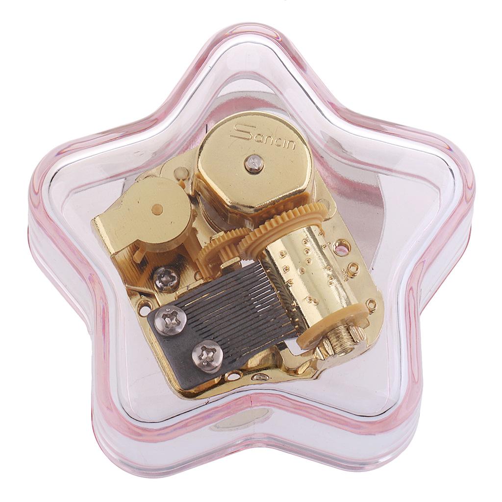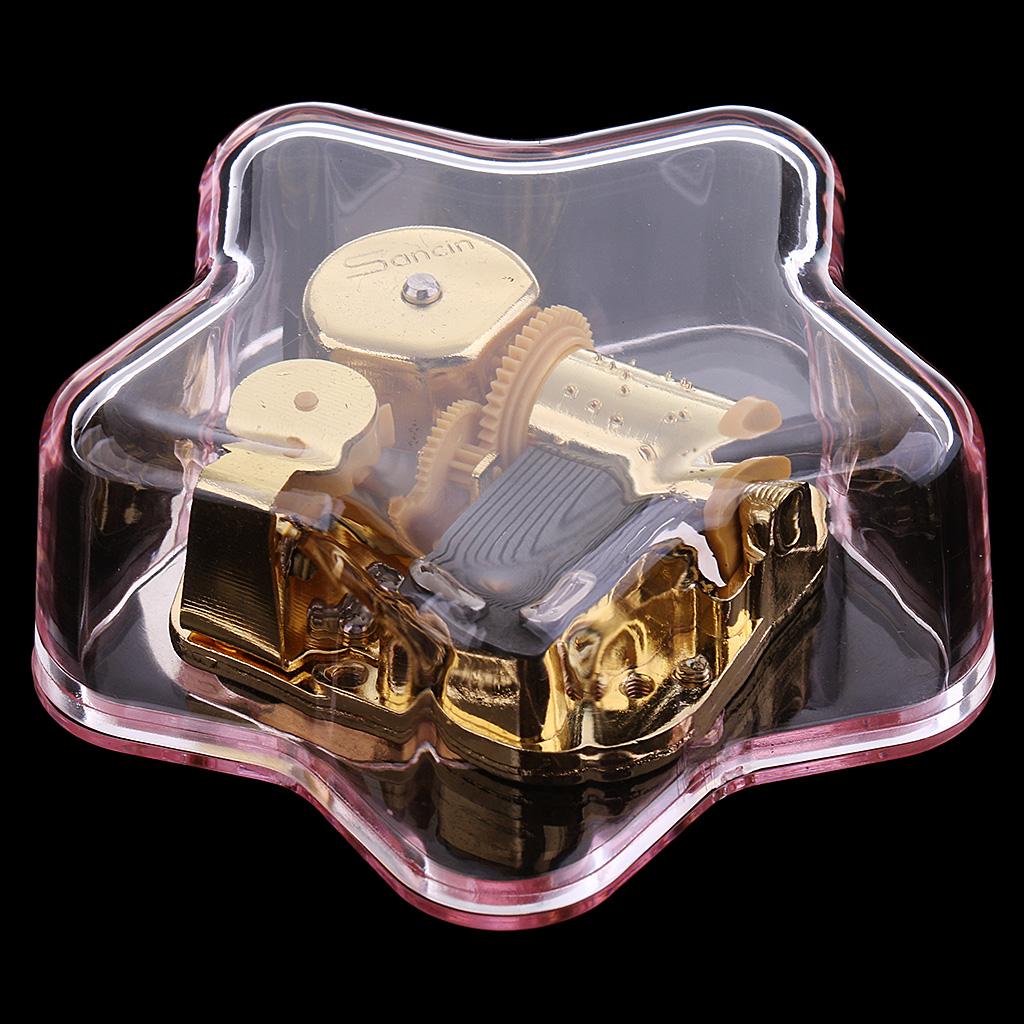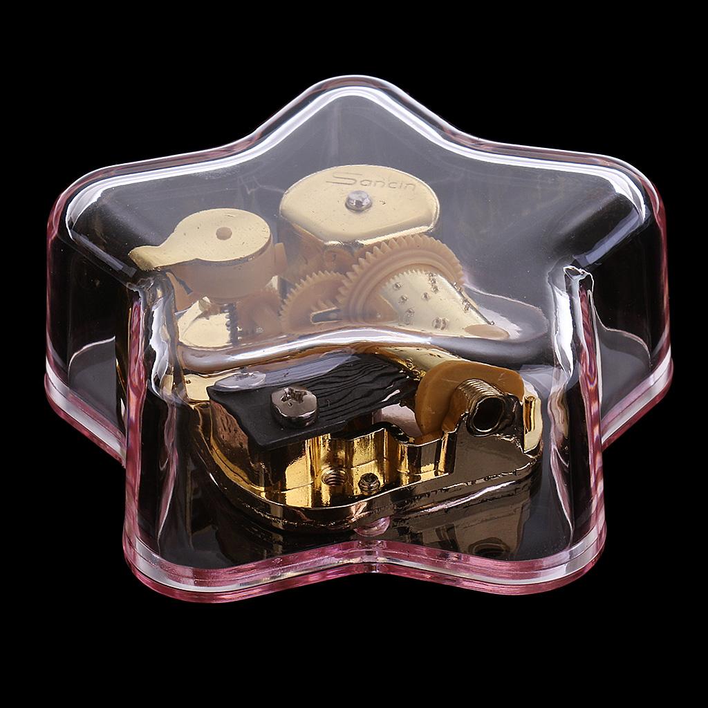 Star-shaped Creative Transparent Acrylic Wind-Up Music Box,Transparent material which can see how the movement work