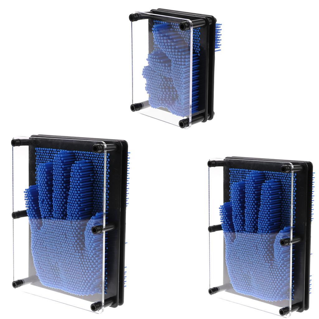 Plastic 3D Image Captor Pin Art Sculpture Hand Mould with Frame Home Décor Office Toy - Blue Small