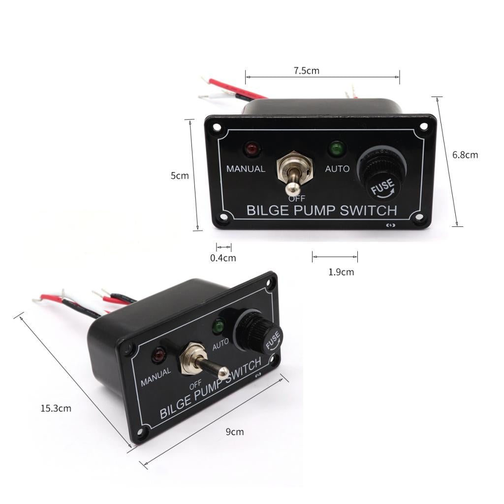 On-Off-On Bilge Pump Switch Panel with Fuse (Manual-Off-Auto).