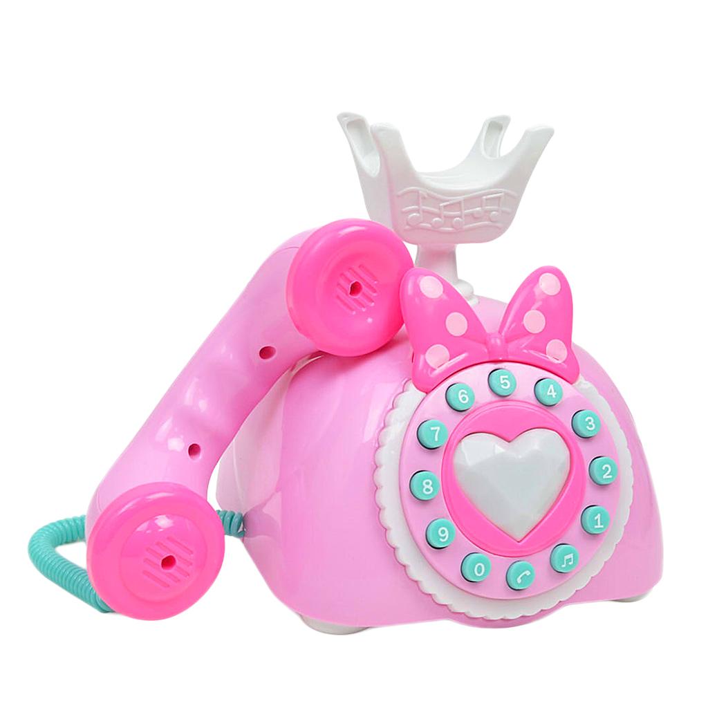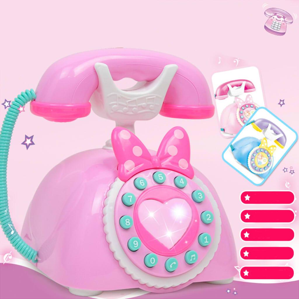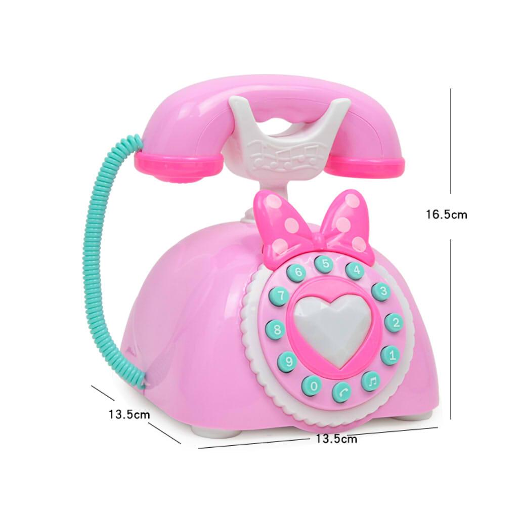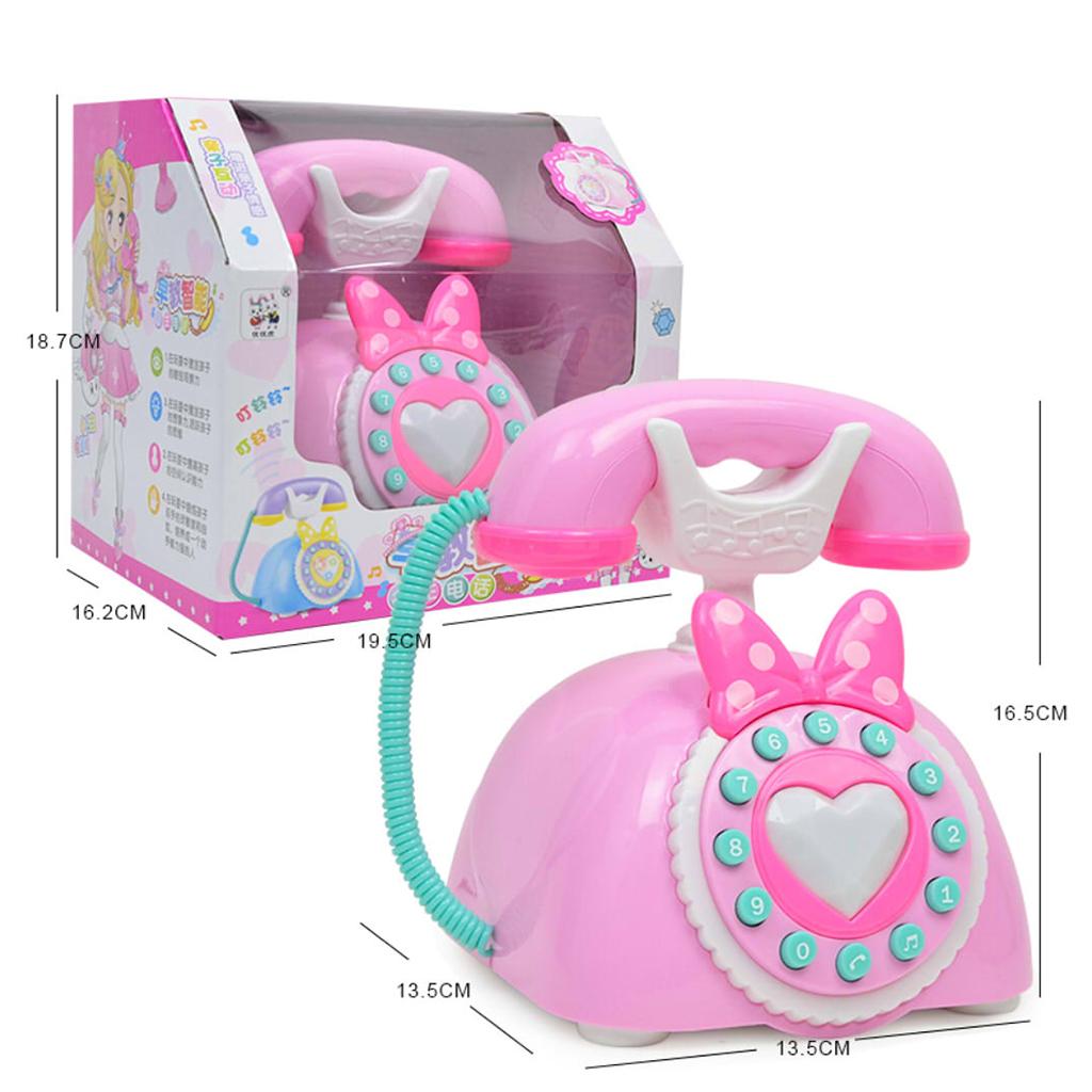 Plastic Electronic Vintage Telephone Landline Kids Pretend Play Early Educational Toy Birthday Gift - Pink