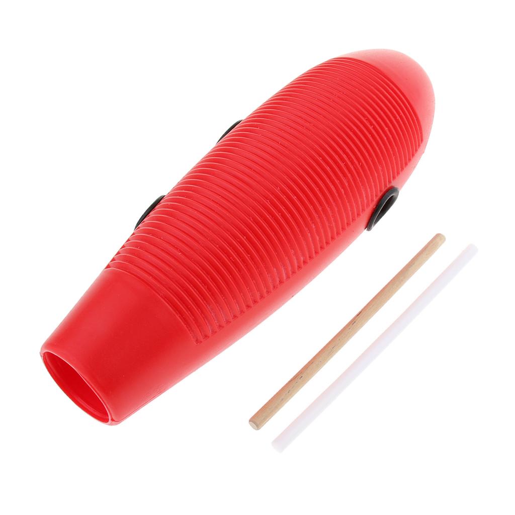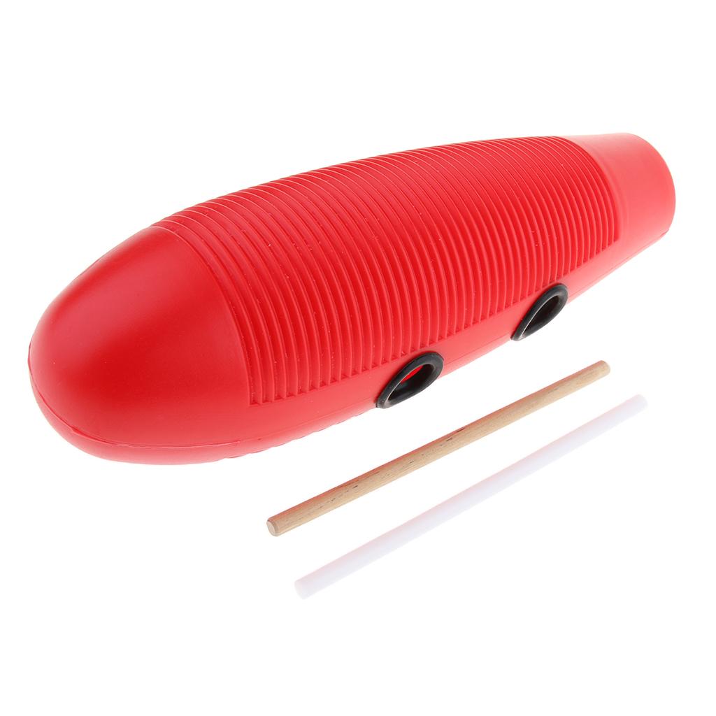 Comes with one wood scrapers and one plastic scrapers for different sounds.