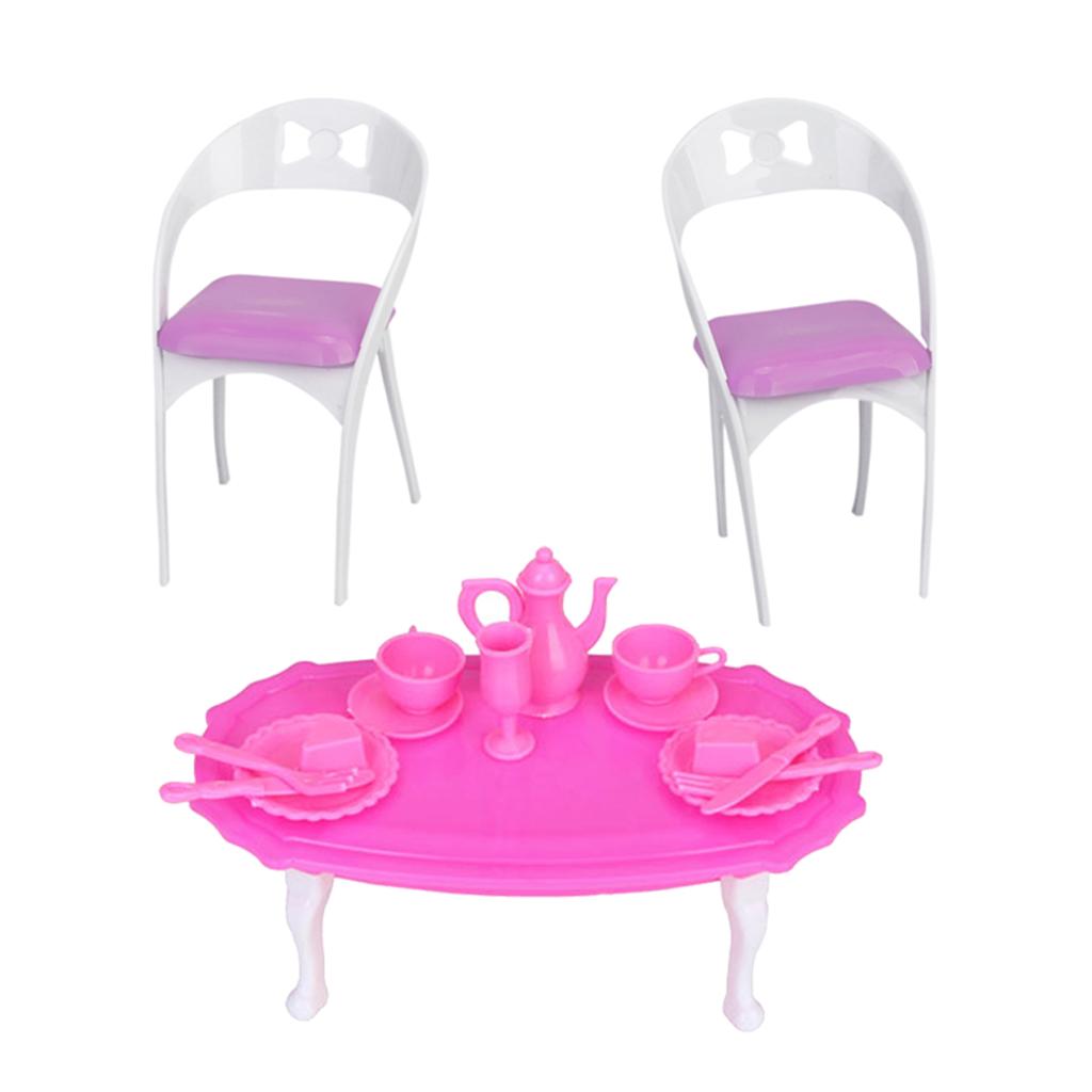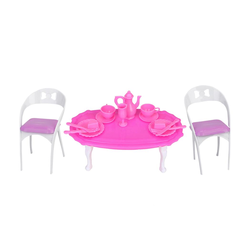 Plastic Miniature Table Tableware Chair Play Set for Dolls House Dining Rooms Decoration Accessories