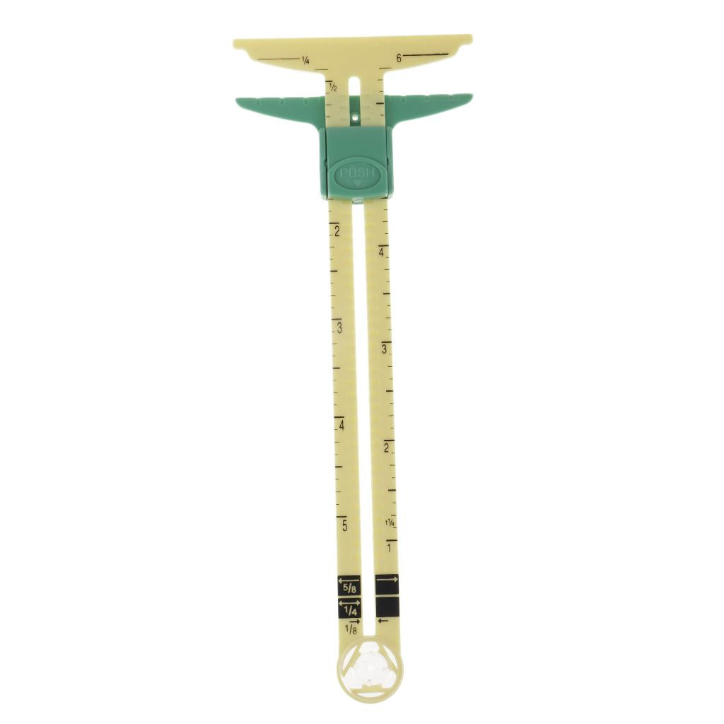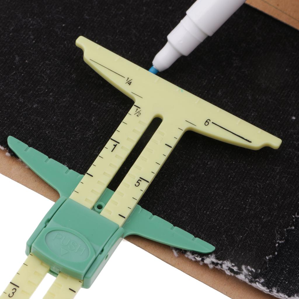 Can be used for marking button holes; seam allowance gauge; hem gauge; circle compass; T gauge.