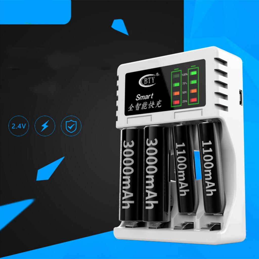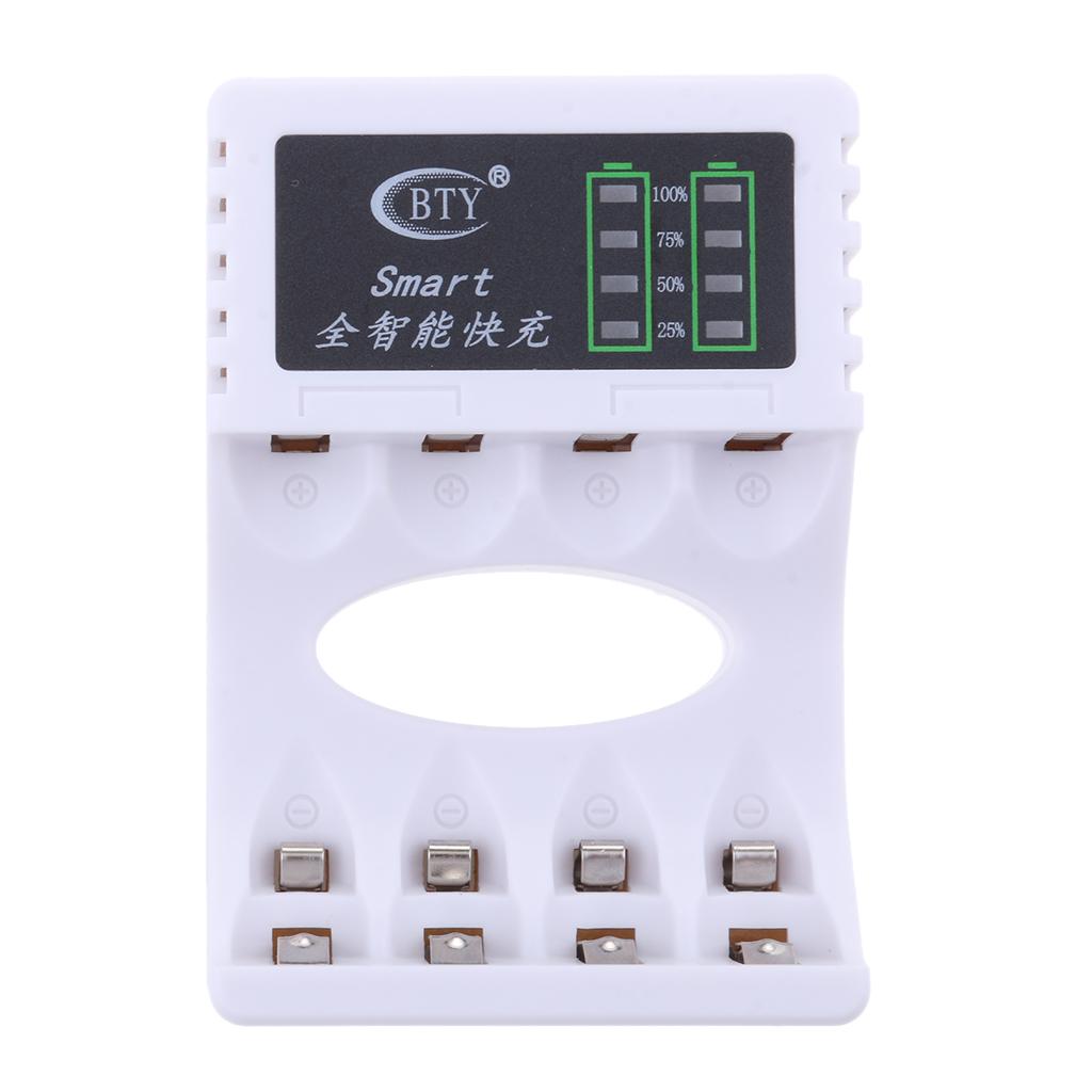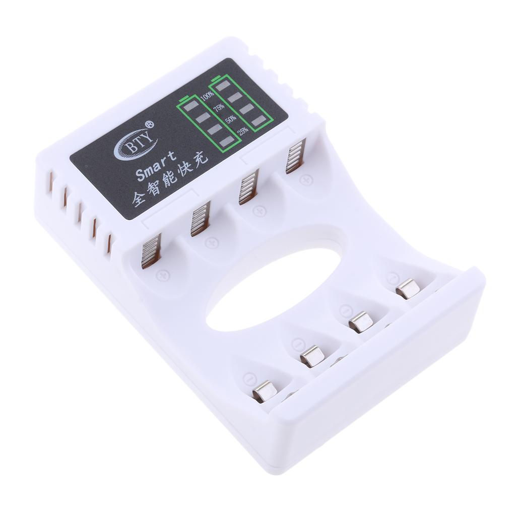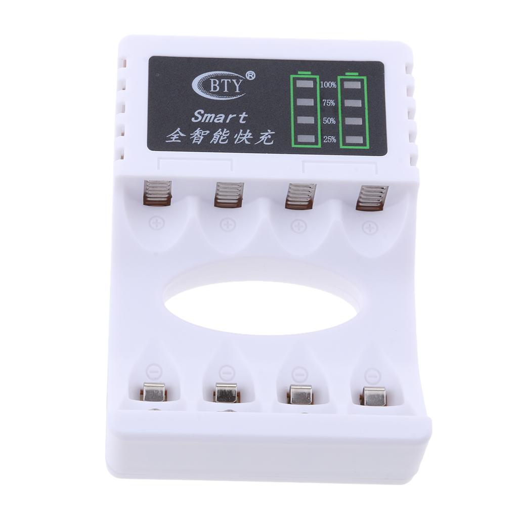 Premium 4 Slot Battery Charger LED Display For AA AAA Rechargeable NIMH NiCd Batteries White