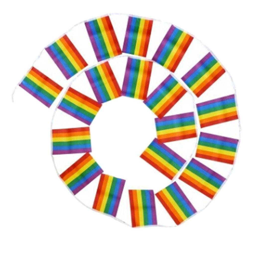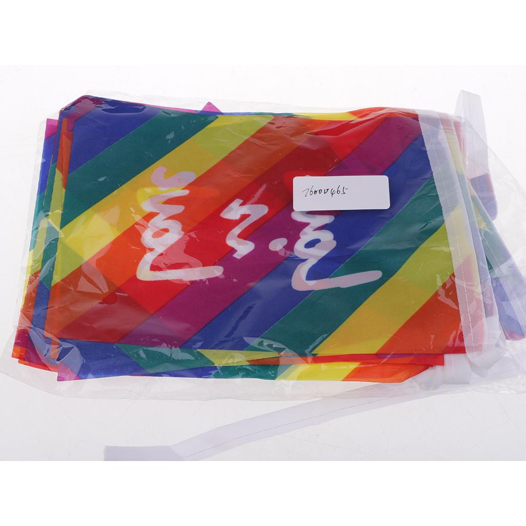 Rainbow string Flags are made of high quality polyester, the color is very sharp and vivid, with fade resistance, suitable for outdoor and indoor use.