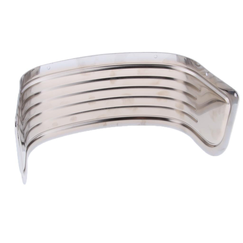 This formed steel fender skirt features four raised accent ribs that wrap around the rear to add depth and texture.
