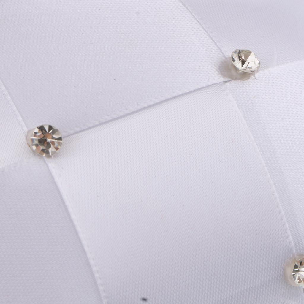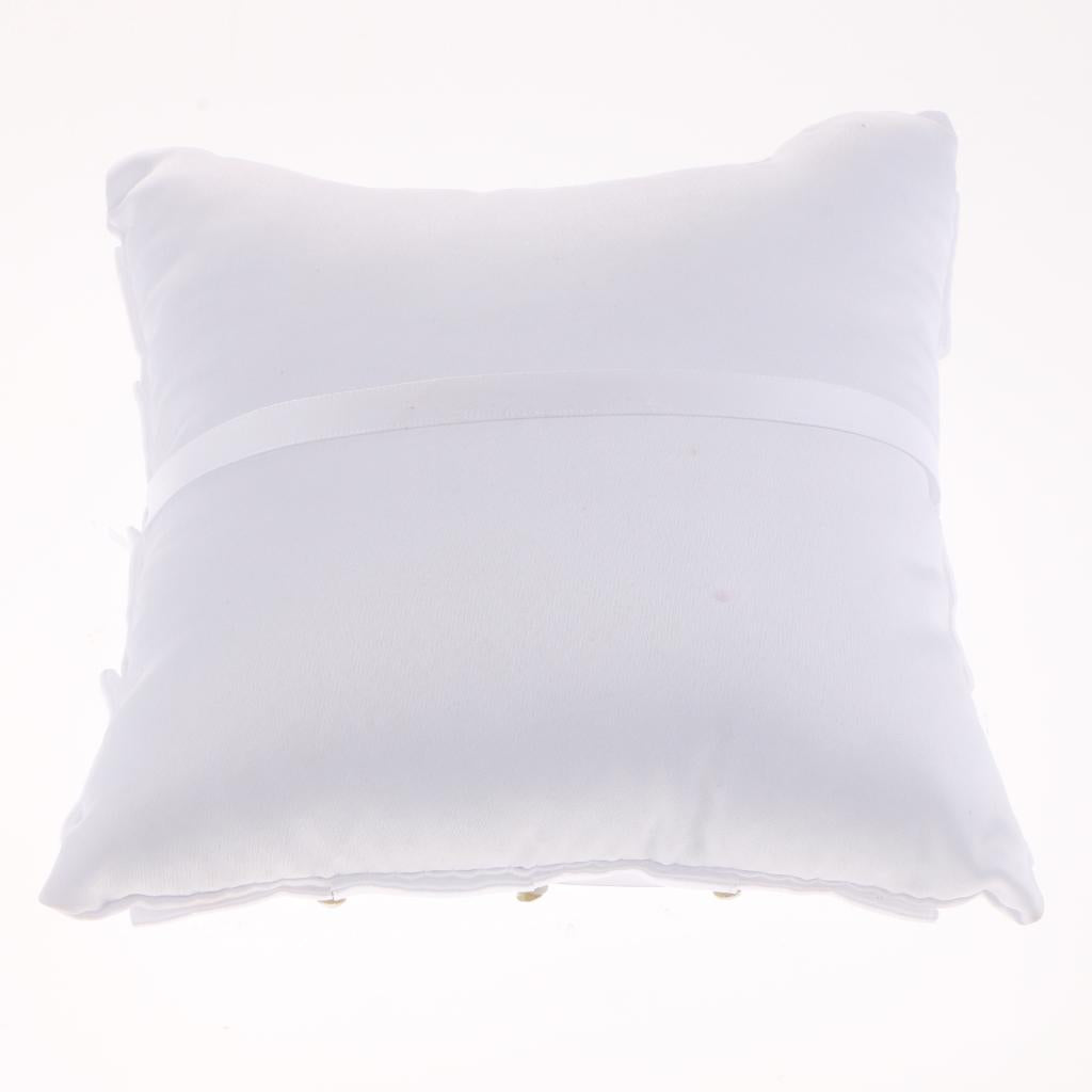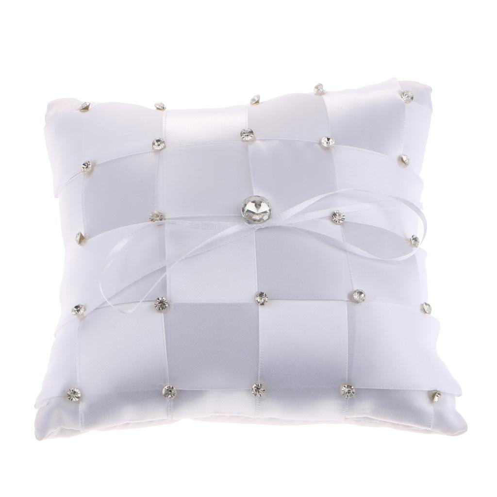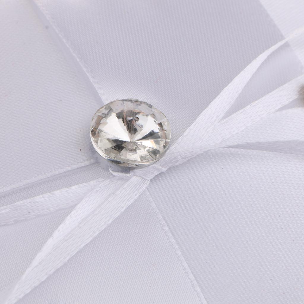 Romantic Grid Wedding Ring Pillow Satin Rhinestone Ring Cushion Bearer White 20x20cm