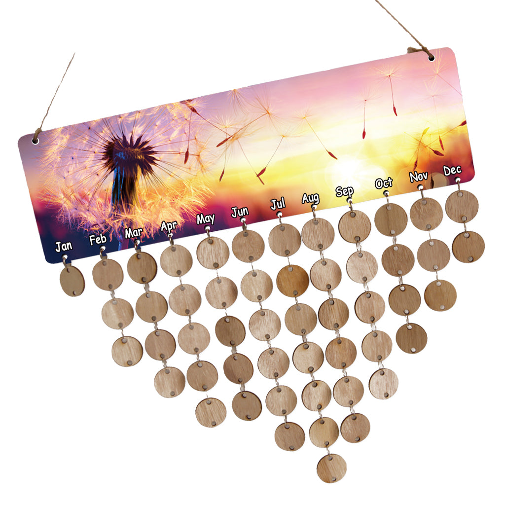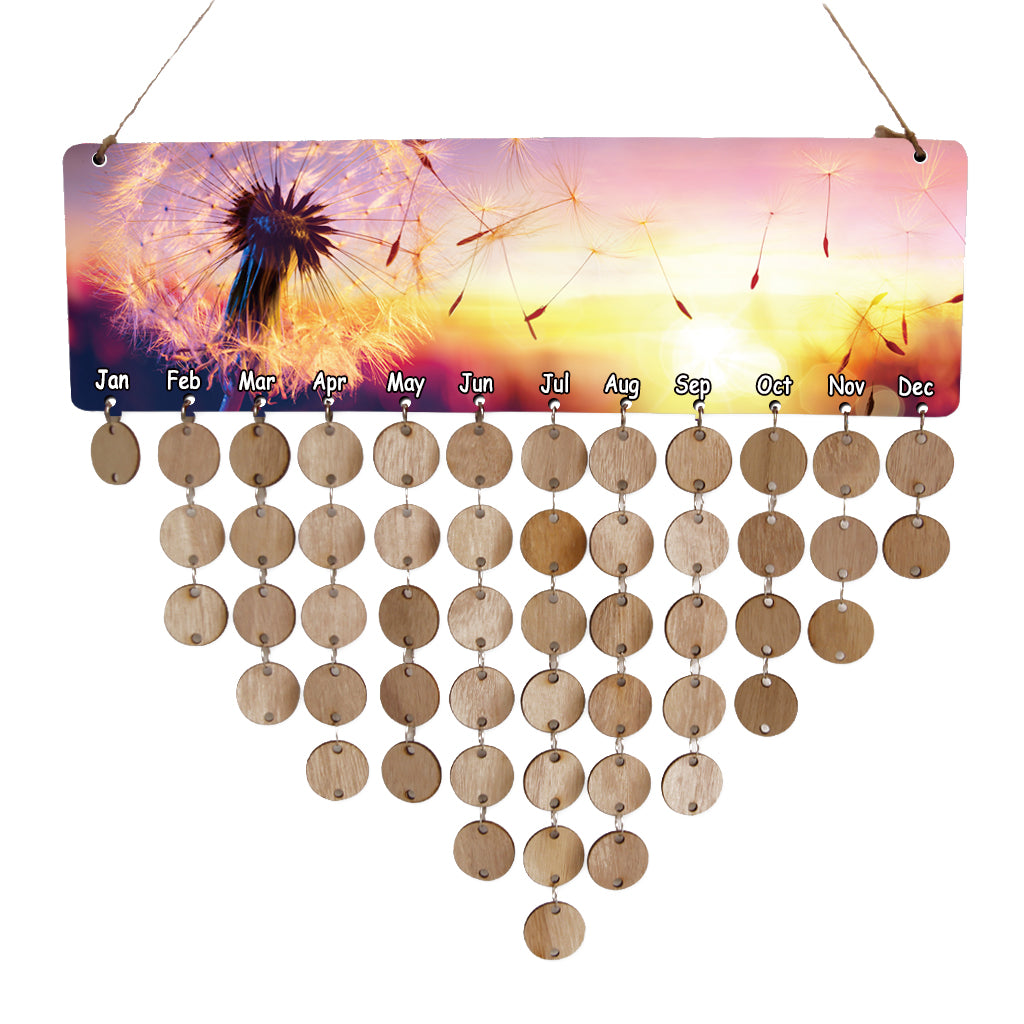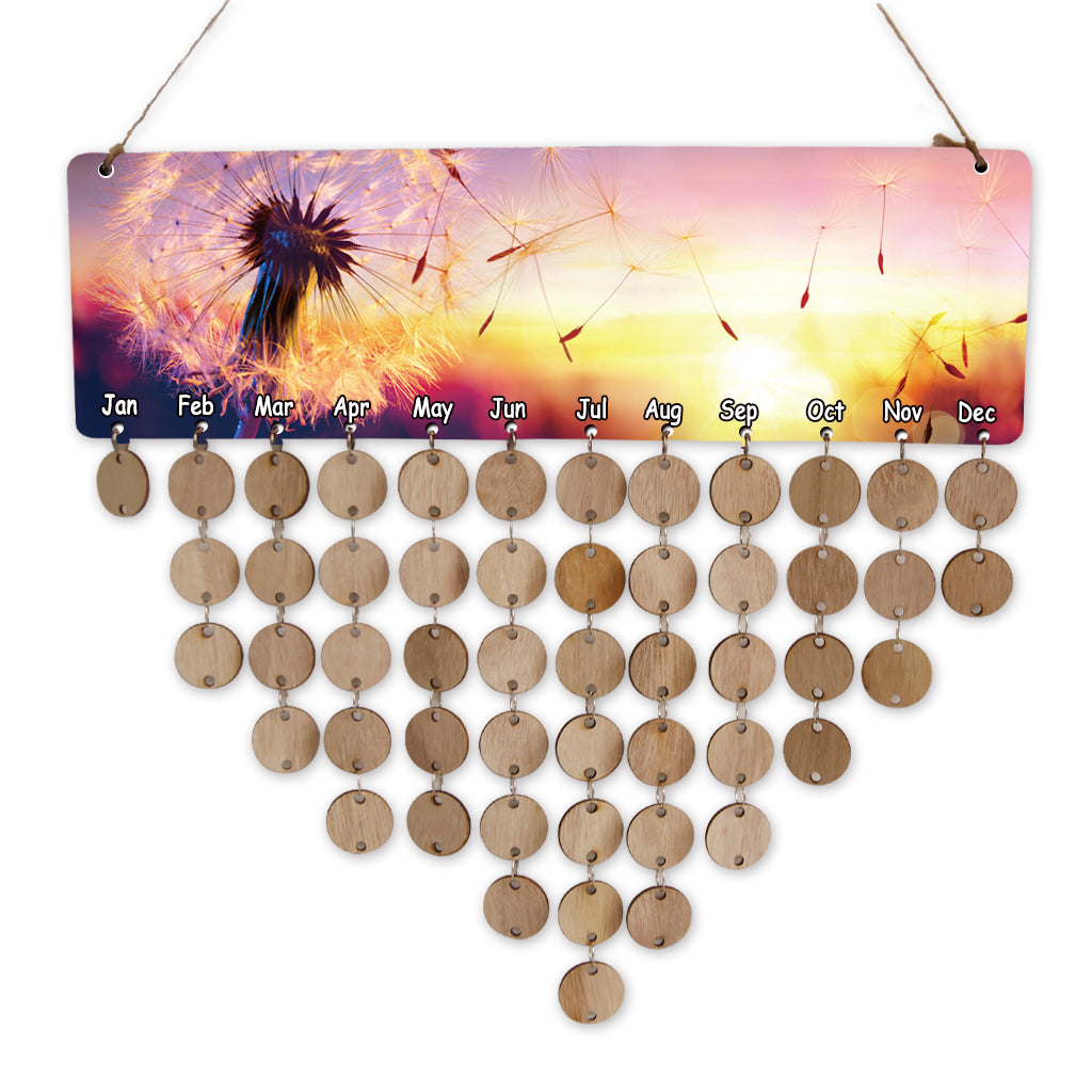 Special MDF Celebrations wooden reminder calendar with printed dandelion.
