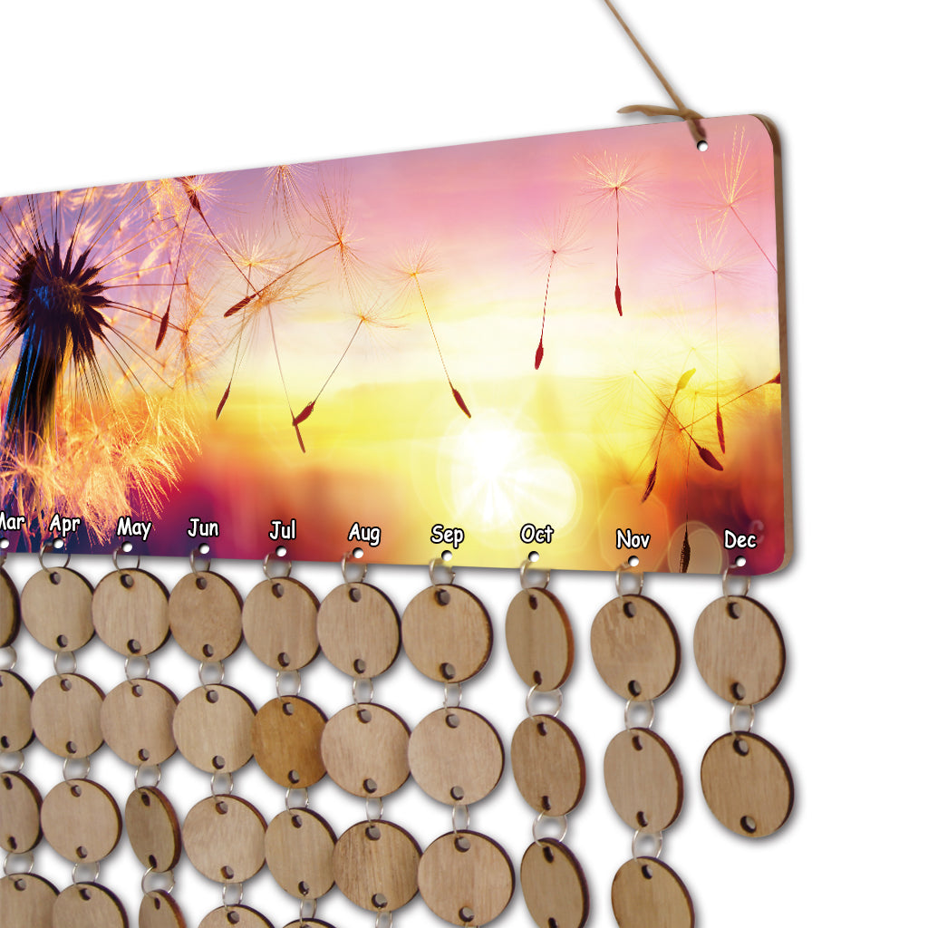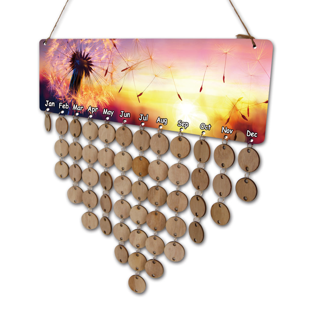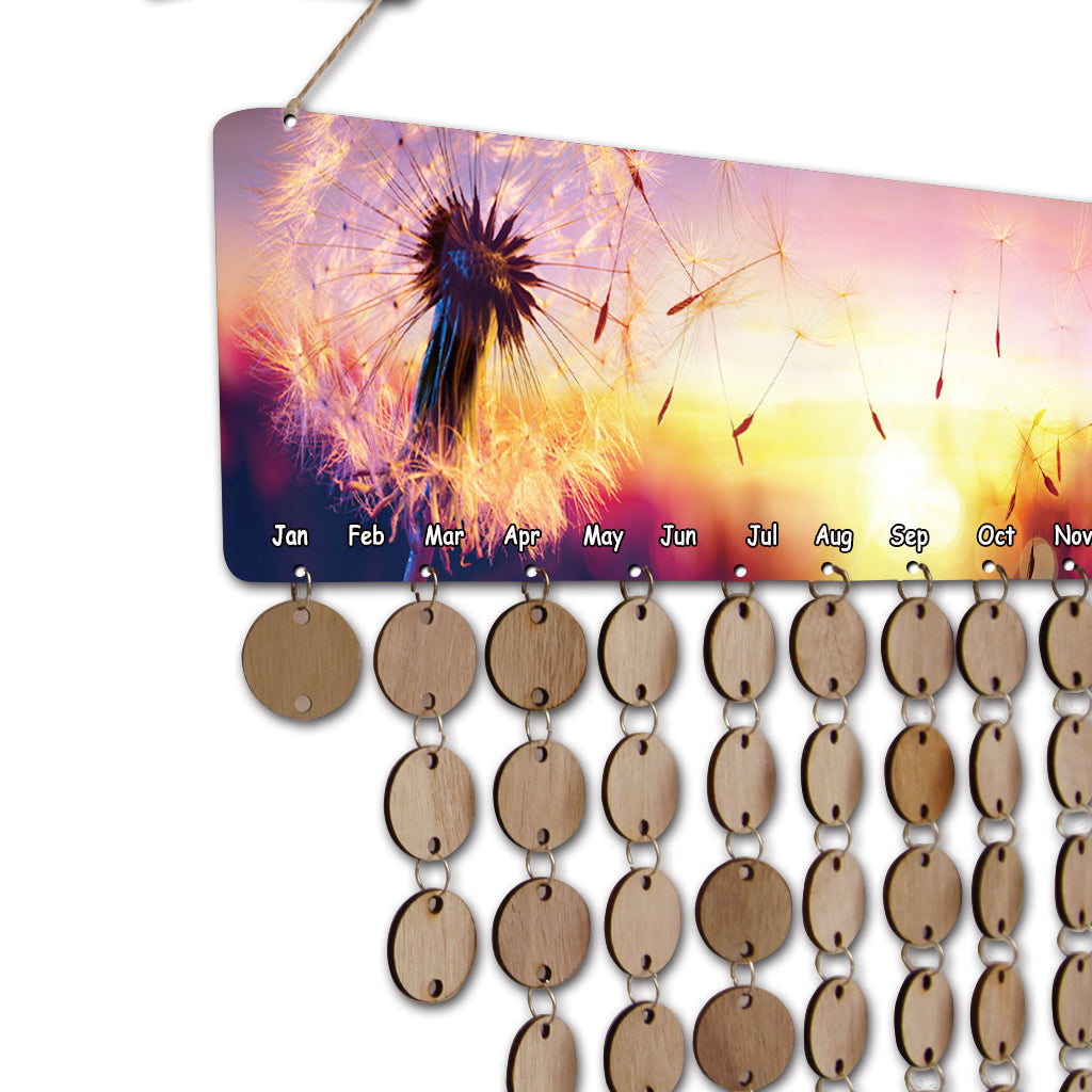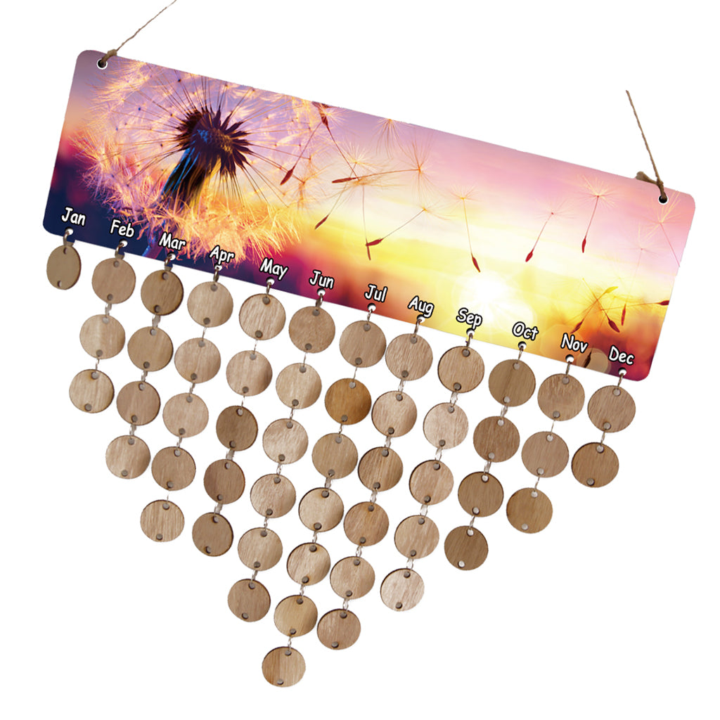 Special MDF Celebrations wooden reminder calendar with printed dandelion.