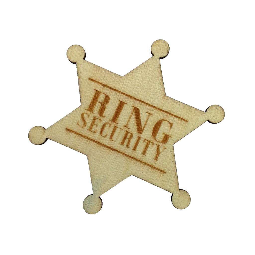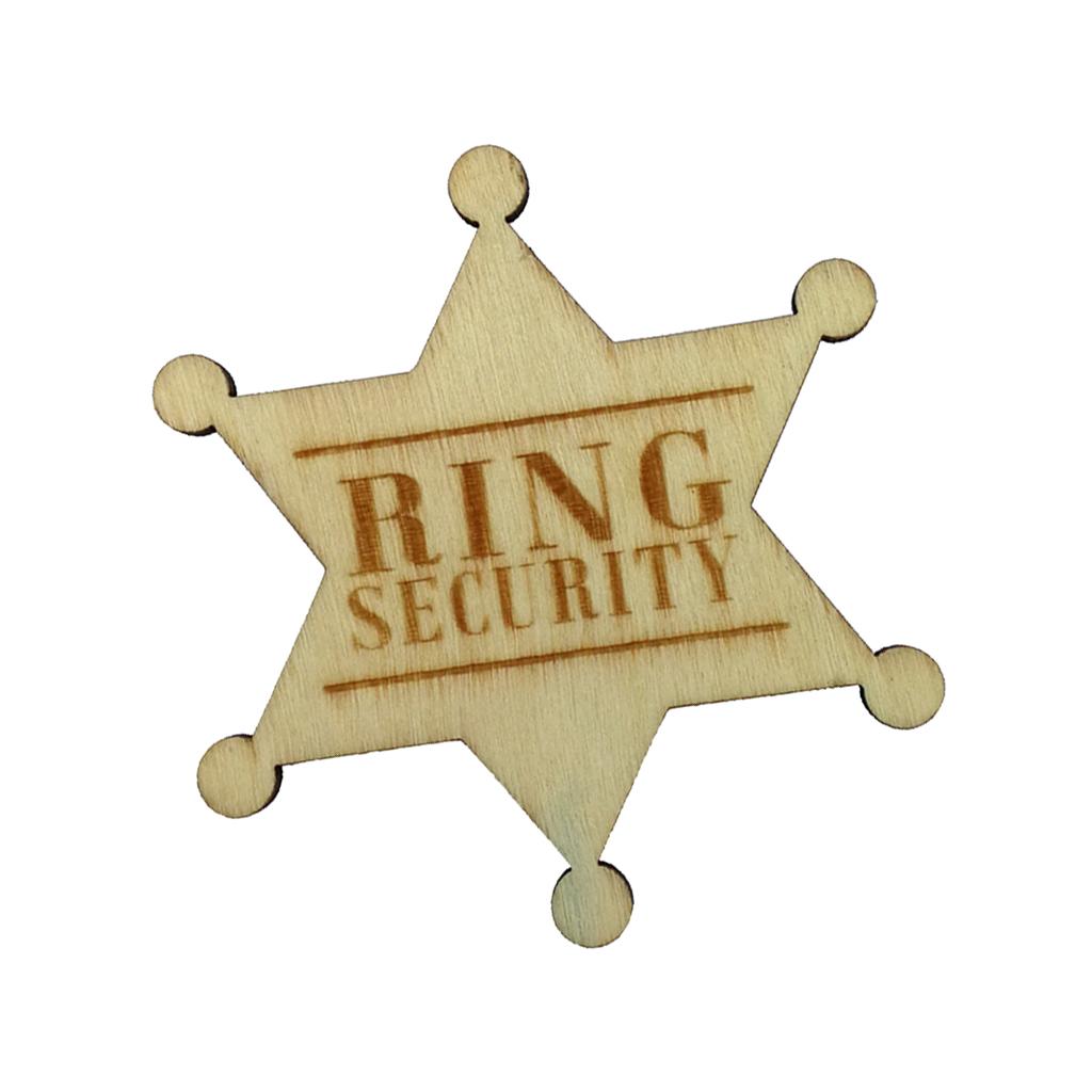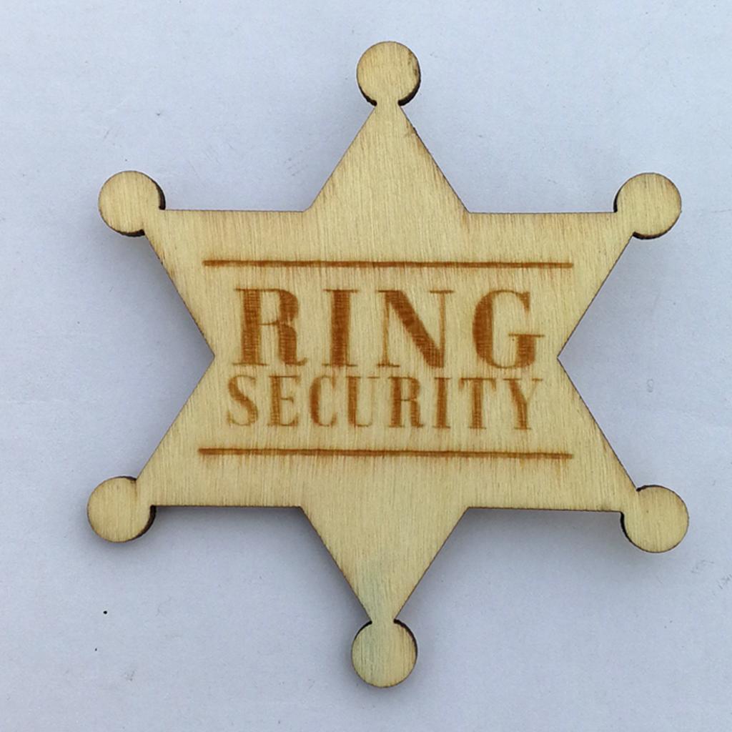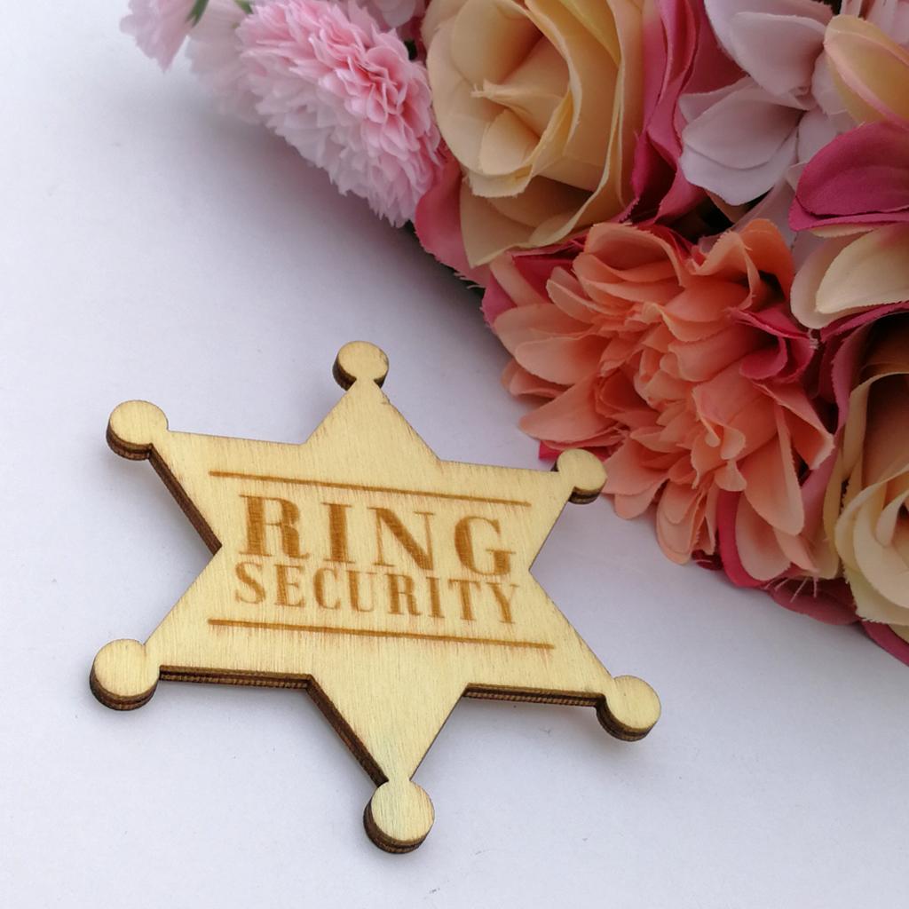 With this lovely wooden badge to show who is in charge of the rings on the wedding day
