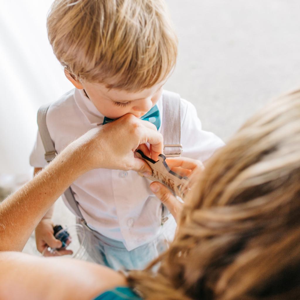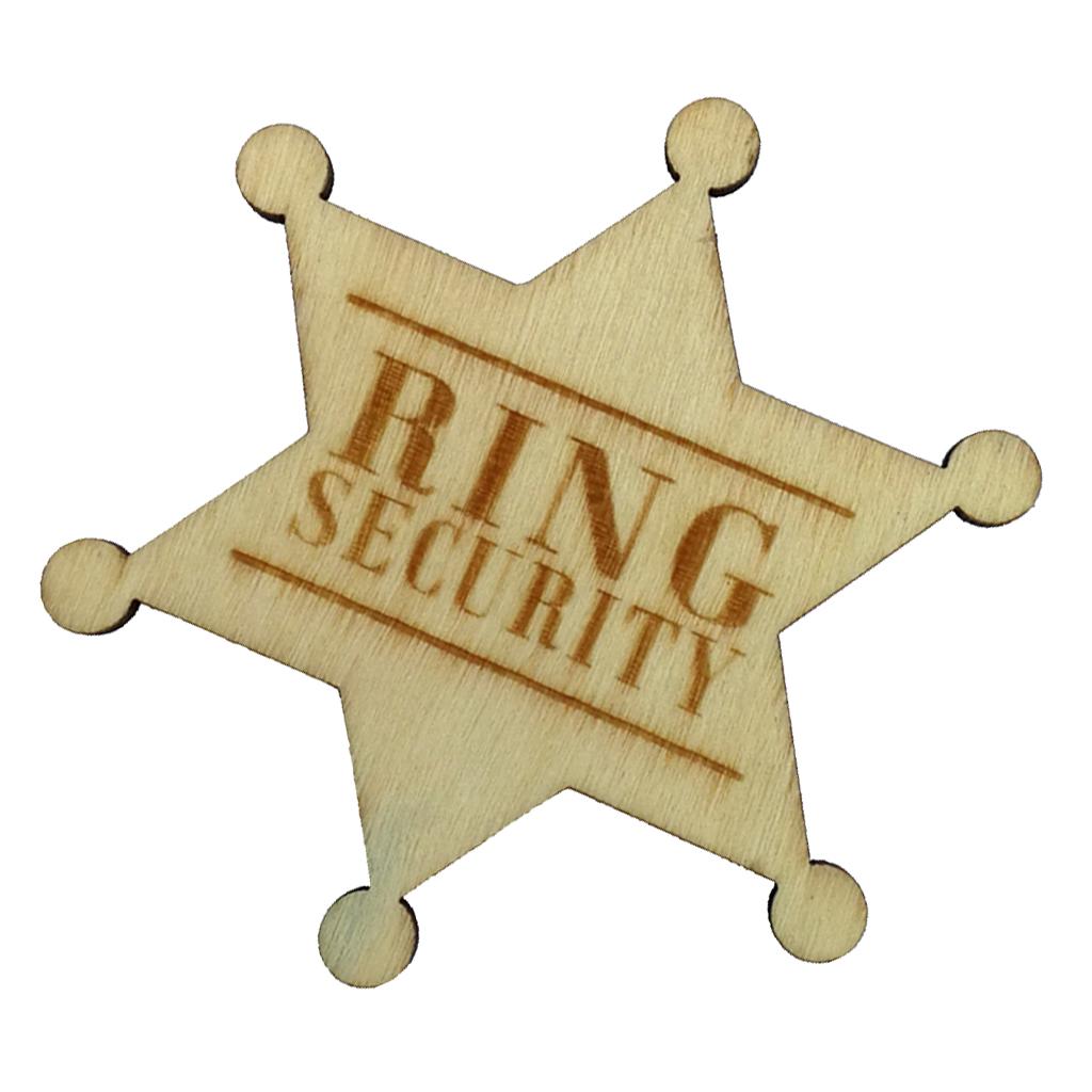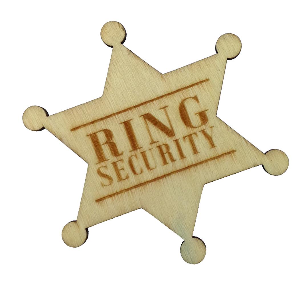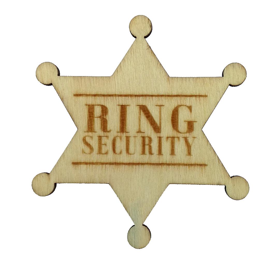 With this lovely wooden badge to show who is in charge of the rings on the wedding day