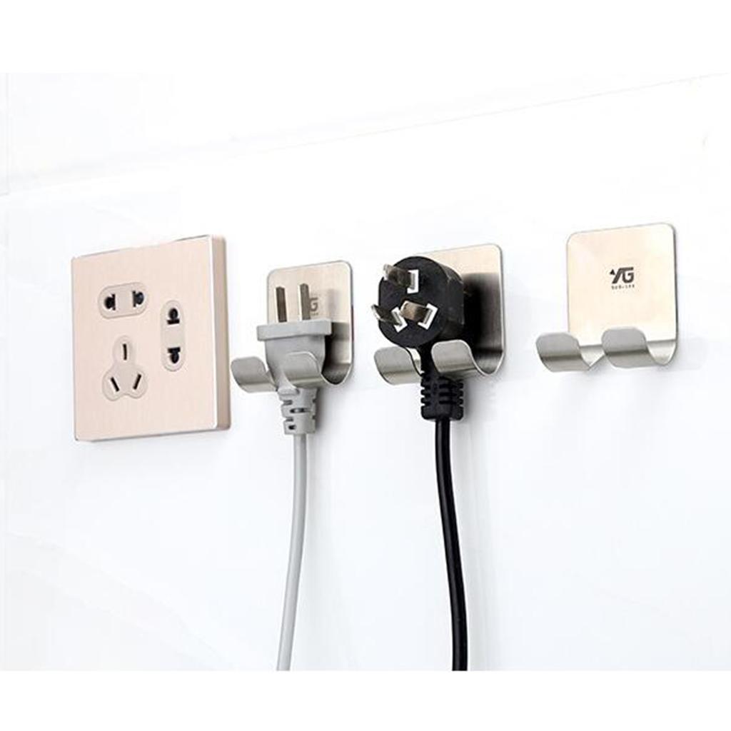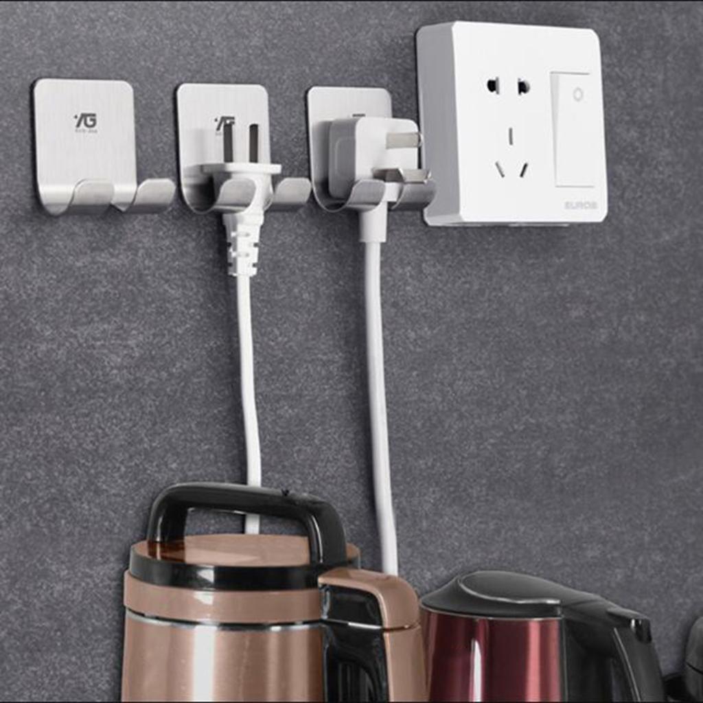 Self-adhesive Bath Paste Linked Stainless Hook Power Cord Plug Holder Sticky