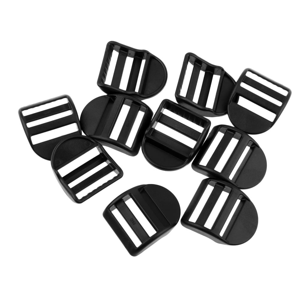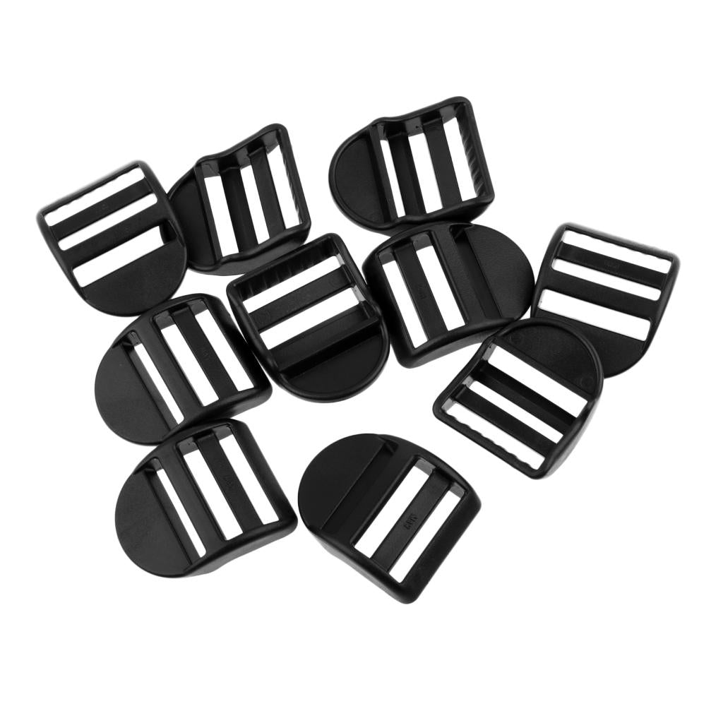 Set of 10pcs Black Durable Plastic Slide Buckles for 25mm/ 1 inch Outdoor Camping Backpack Webbing Strap