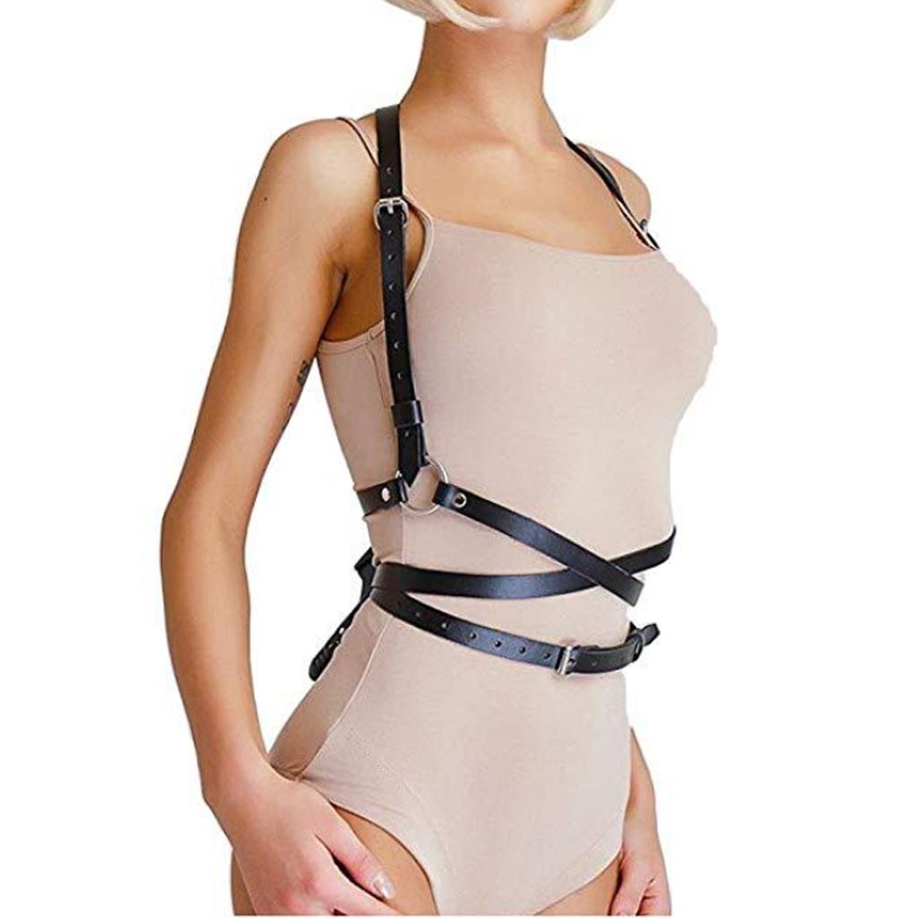 Vintage body chest harness belt, great costume accessories for making a gothic steampunk look or punk rock look, cool for night club, rock music concert or Halloween fancy dress