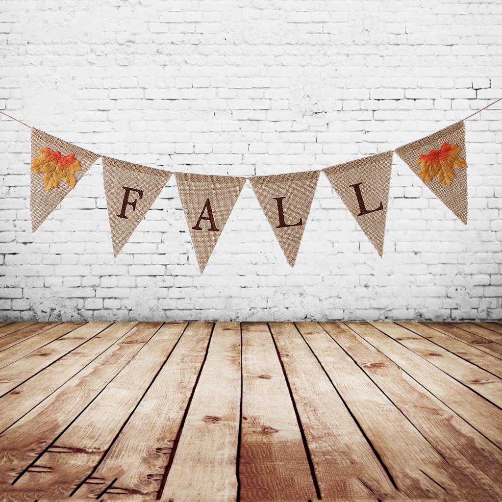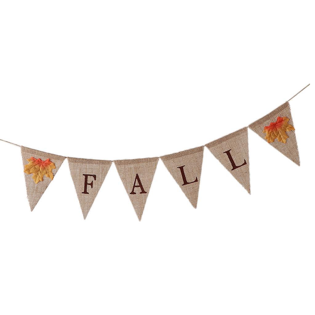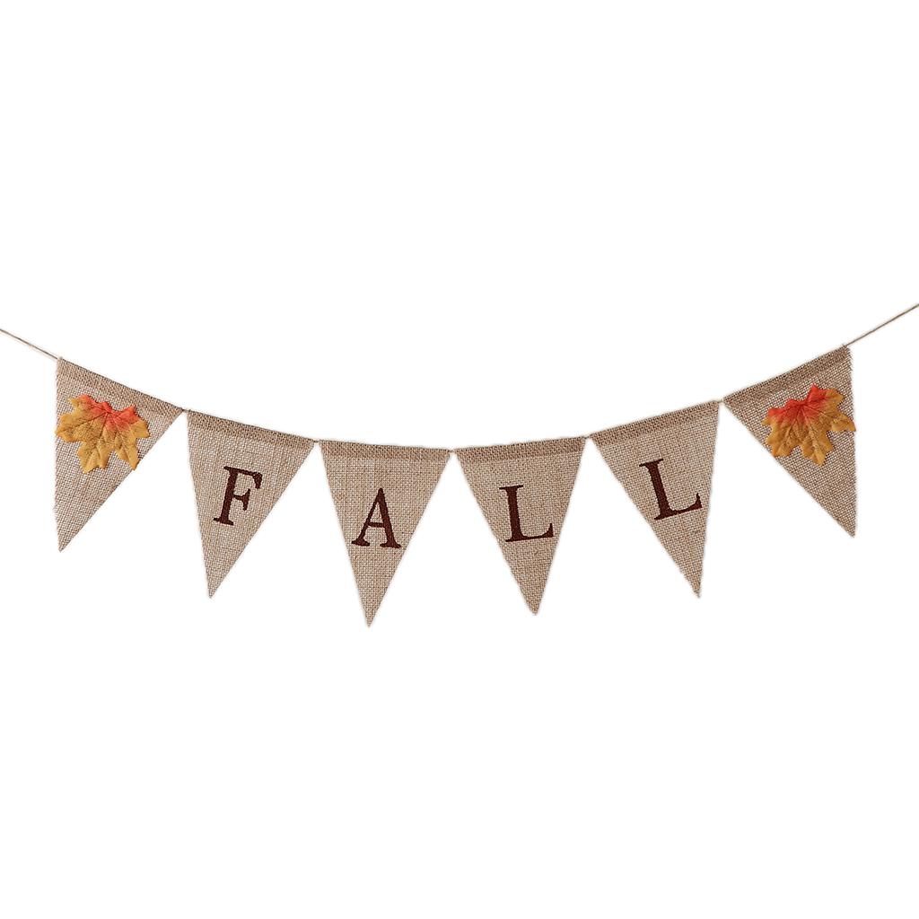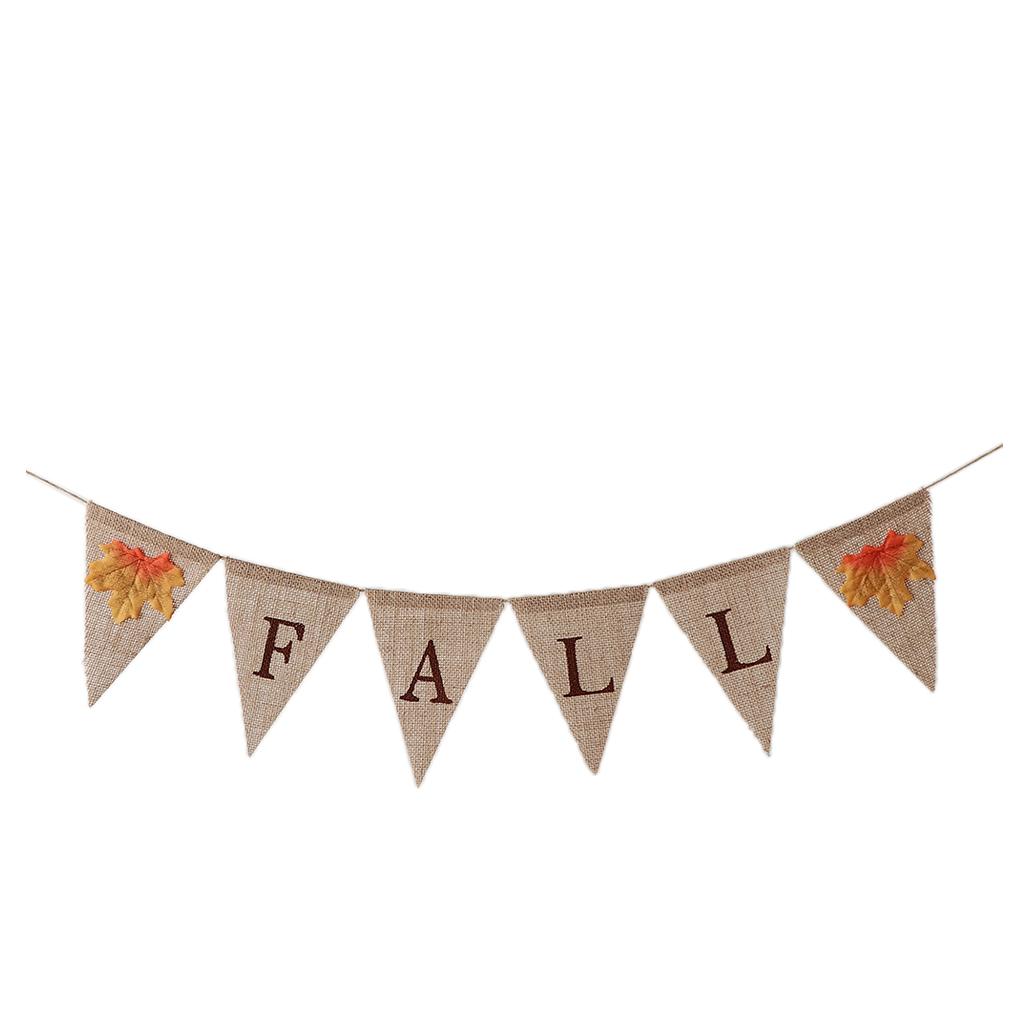 Vintage hessian linen fall letters banner, featured with maple leaves.